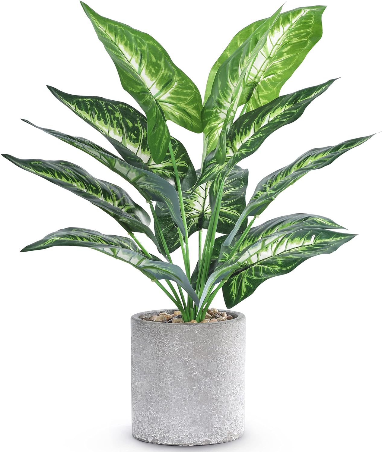 Perfect Size: The fake house plants has 12 leaves with vivid and beautiful colors. Plant height: 16″tall × 10.2″wide; Pot: 3.9″tall × 3.7″ diameter; Weight: Approximately 0.95 lb
