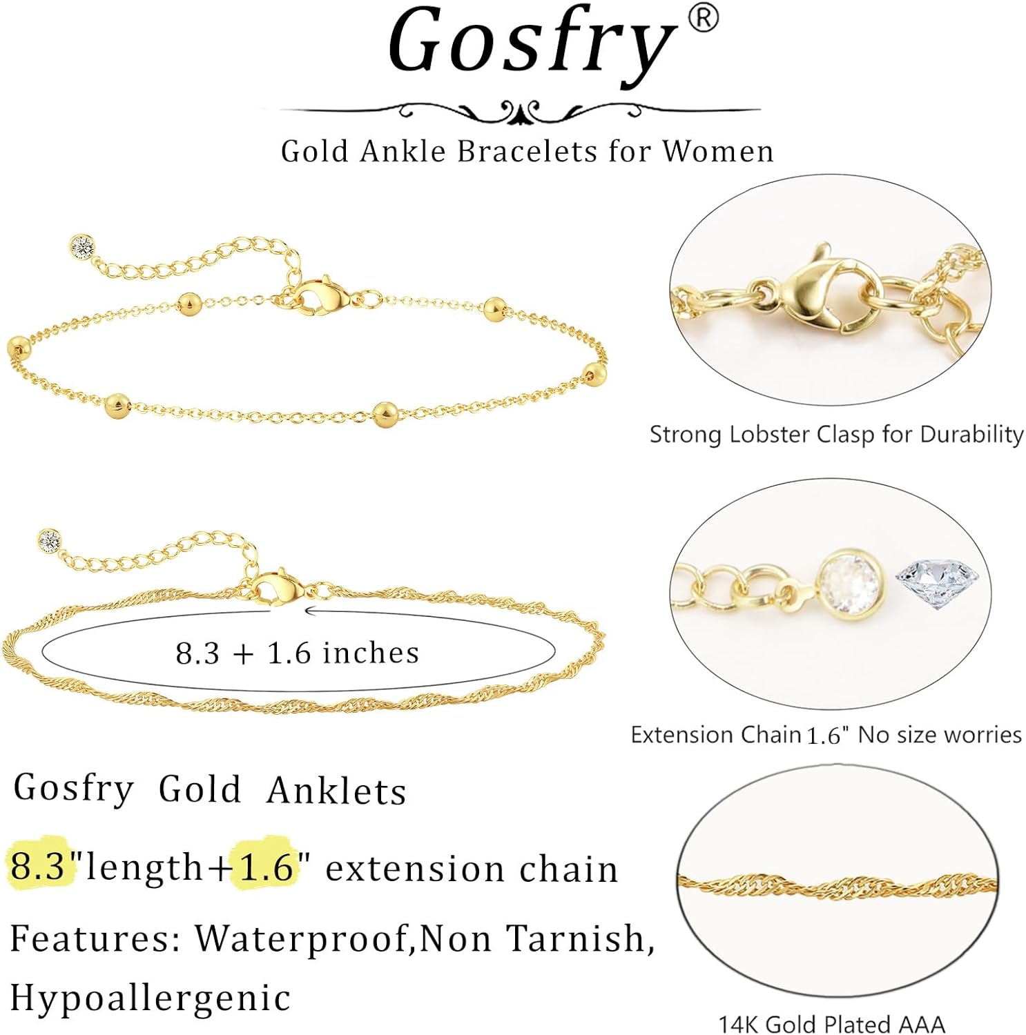 Anklets size 8.3″+1.6″ Anklets features hypoallergneic, waterproof, no fading, shiny Anklets material 14k gold plated Anklets color gold