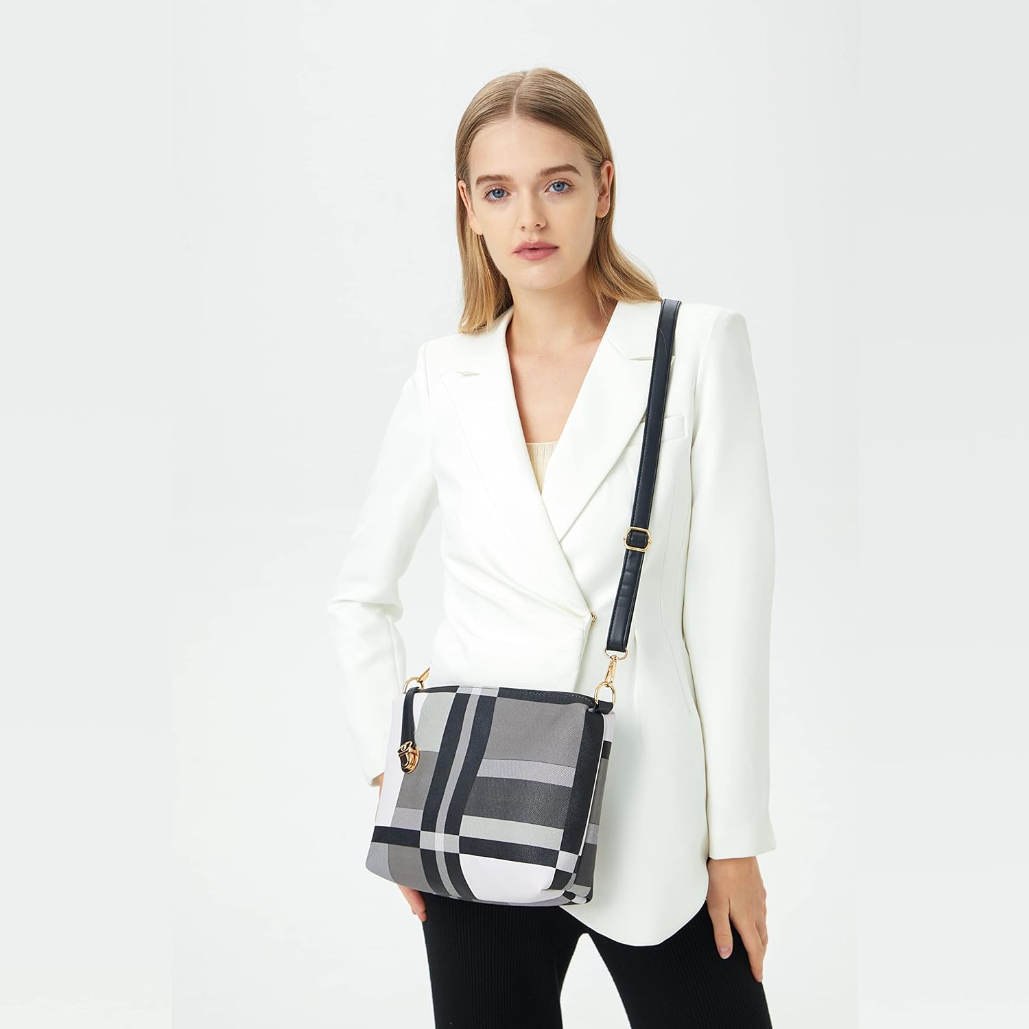 The product has gold hardware.