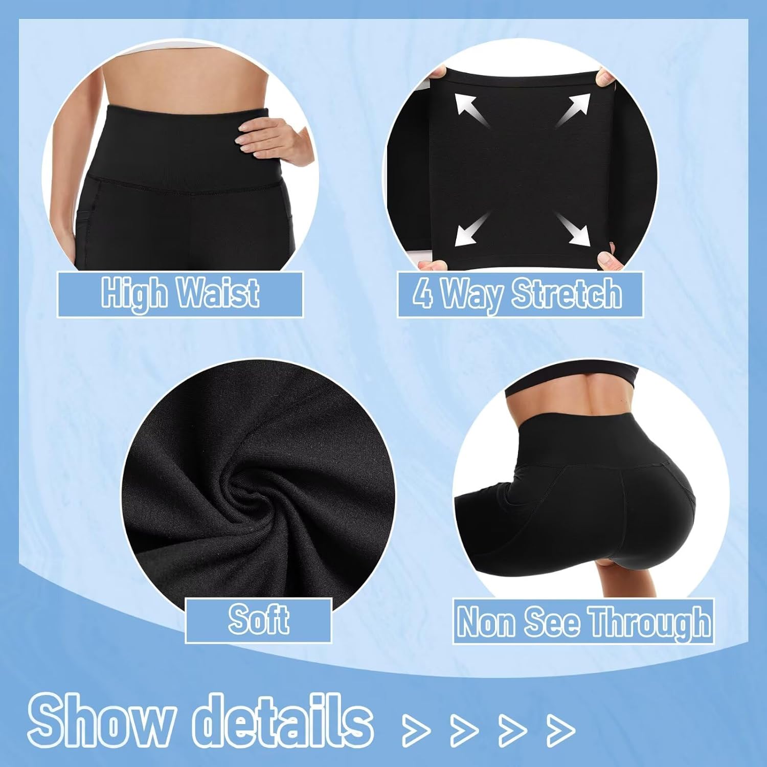 5 Pack Biker Shorts with Pockets for Women – 5″/8″ High Waist Spandex Workout Yoga Running Athletic