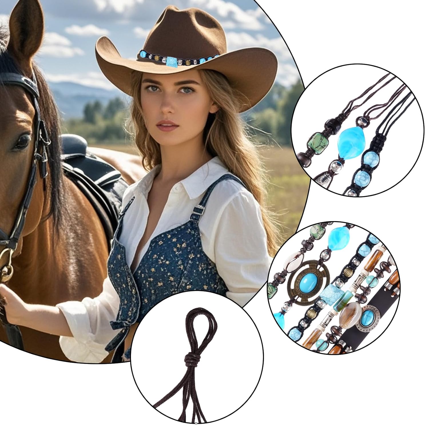 Assorted Material: Our ethnic cowboy hat bands for women are made of PU leather, ropes, beads, and metal, which are soft, lightweight and reusable for long time use