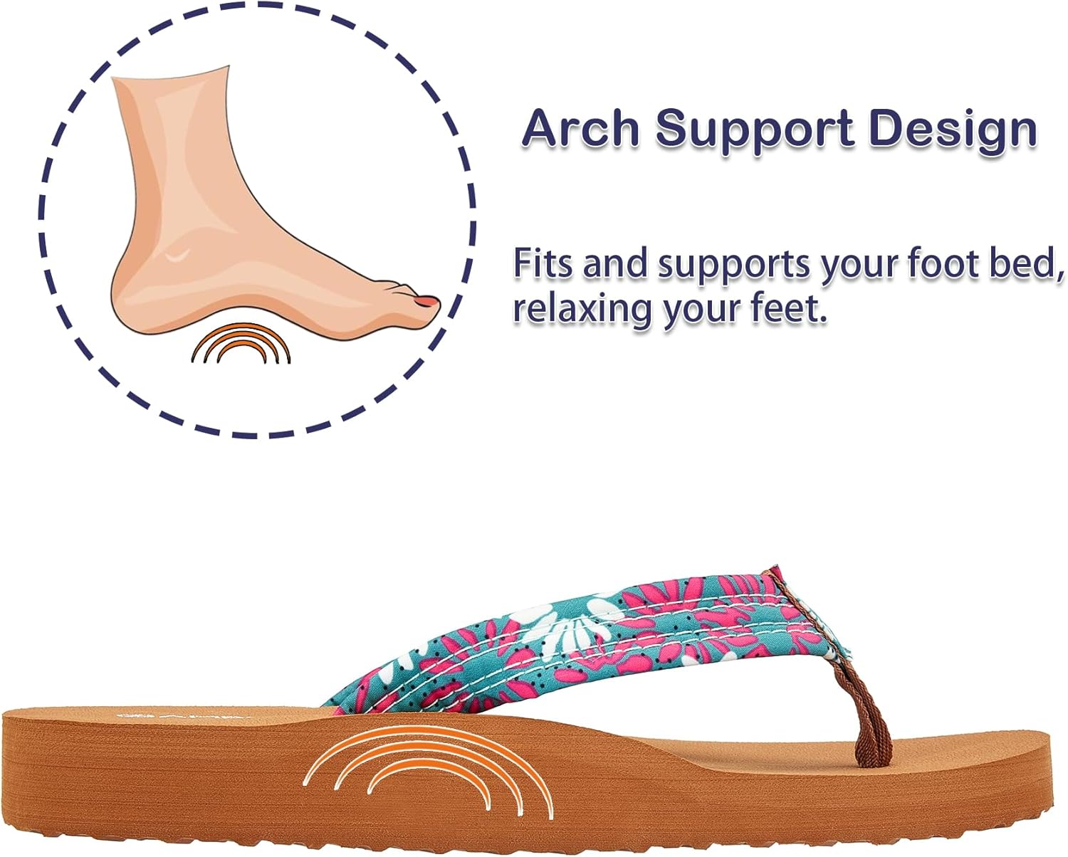 Customers find these flip flops comfortable, with one noting they don’t hurt between the toes, and appreciate their summery look. They offer good arch support and cushioning, with one customer comparing the sole to a cushiony spring, and customers consider them better than regular flip flops for the price. The size receives mixed feedback – while some find them wide enough for medium-wide feet, others say they’re too narrow.