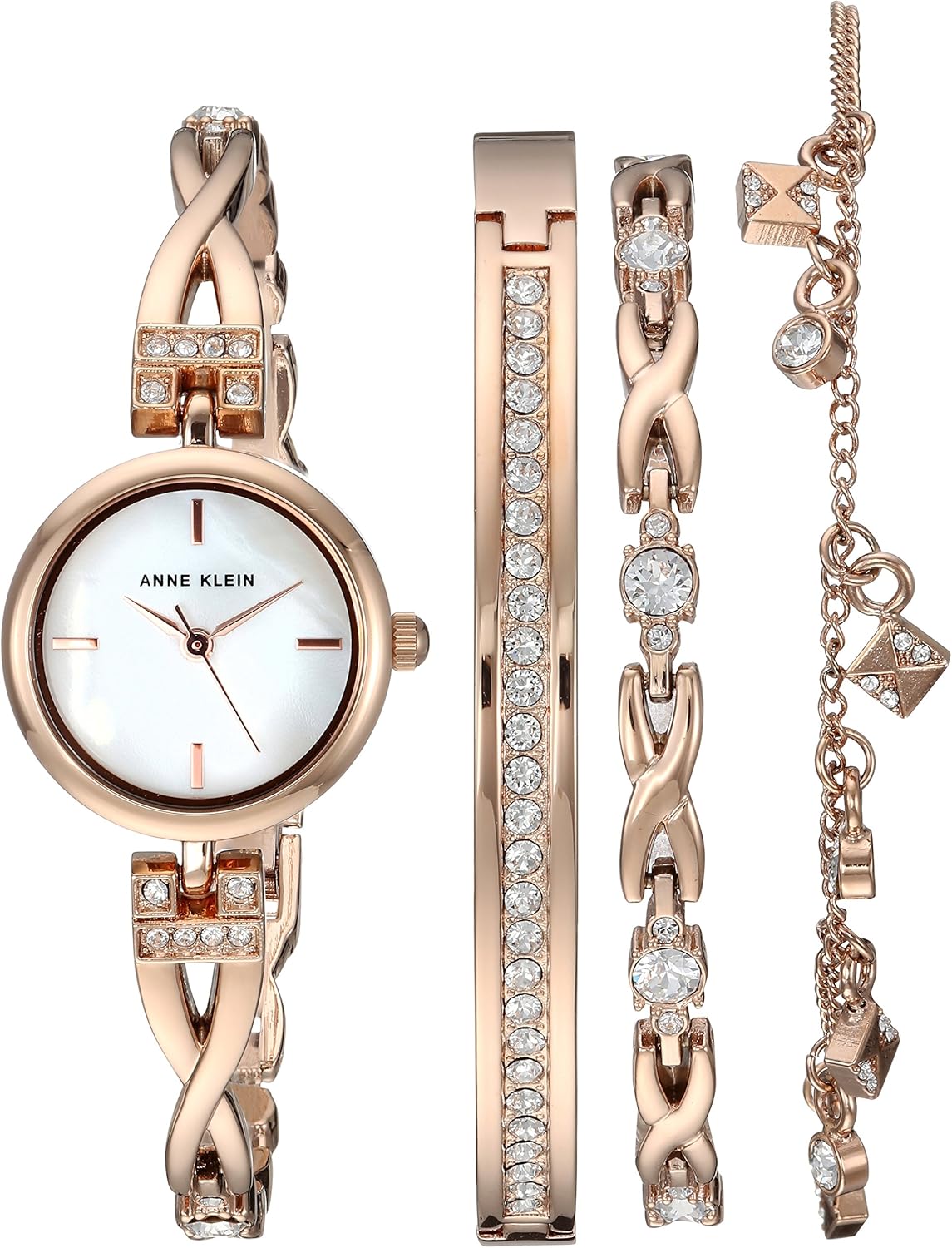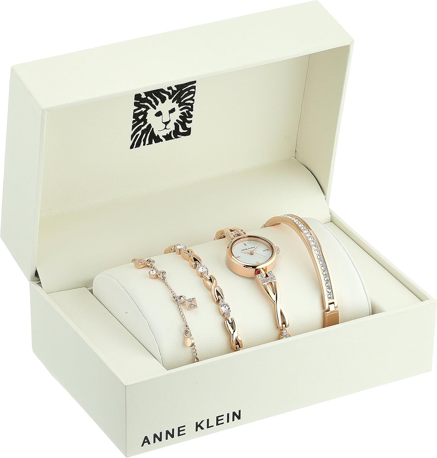 Anne Klein Women’s Premium Crystal Accented Silver-Tone Watch and Bracelet Set