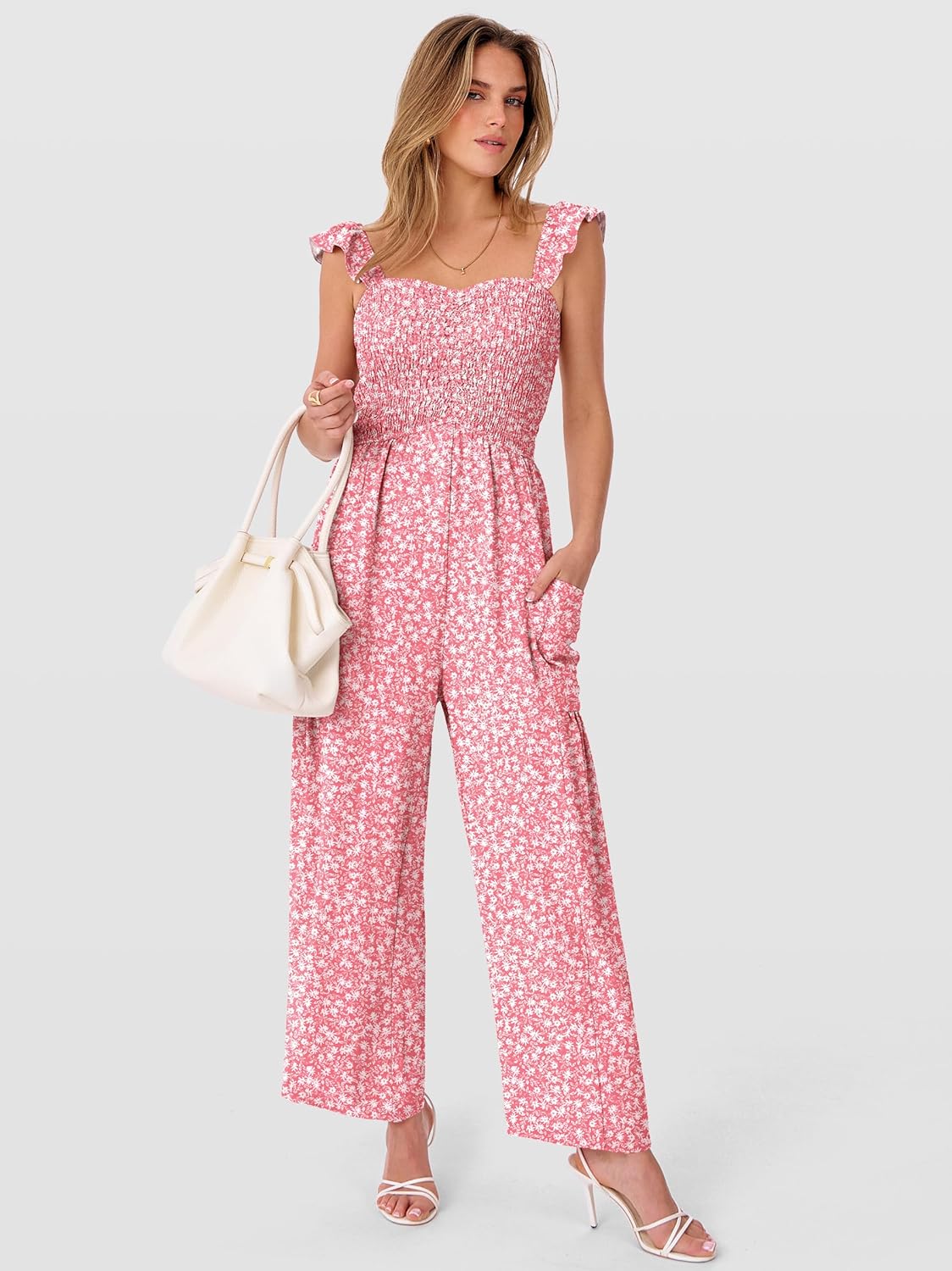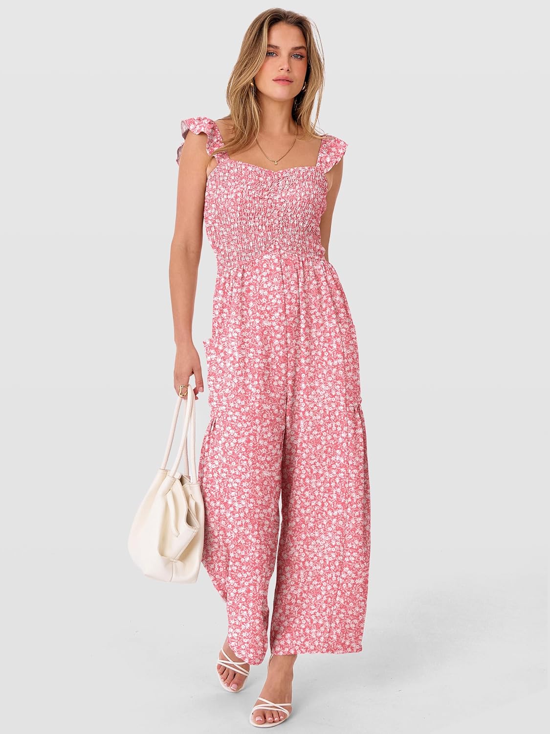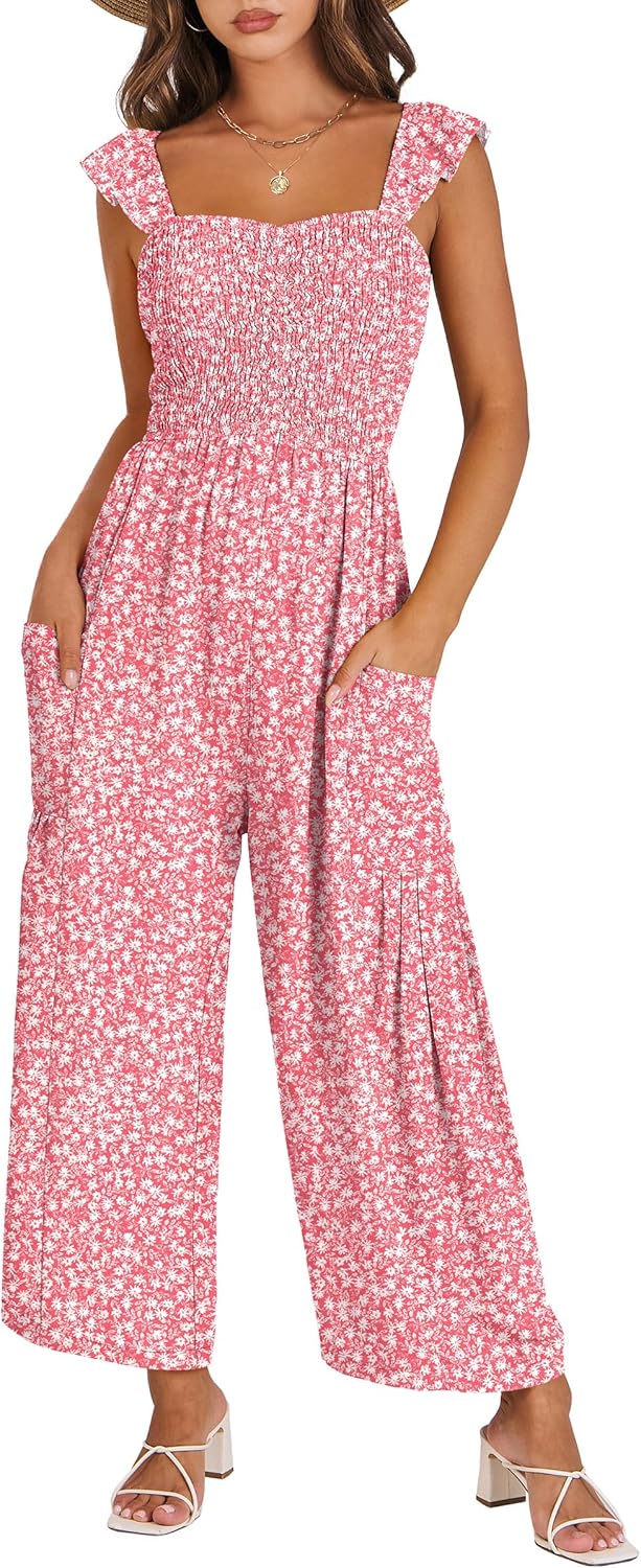 ANRABESS Jumpsuits for Women Dressy One Piece Summer Outfits Wide Leg Sleeveless Smocked Romper Jumpers Casual Beach Overalls