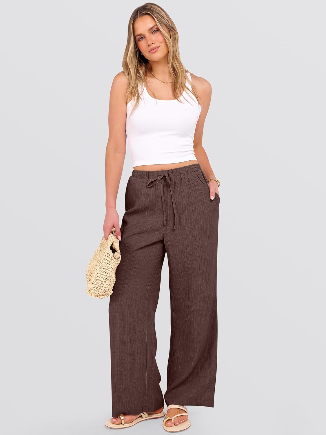 Be the first to review “ANRABESS Women’s Wide Leg Beach Pants Elastic Waist Lightweight Casual Flowy Palazzo Lounge Trousers with Pockets”