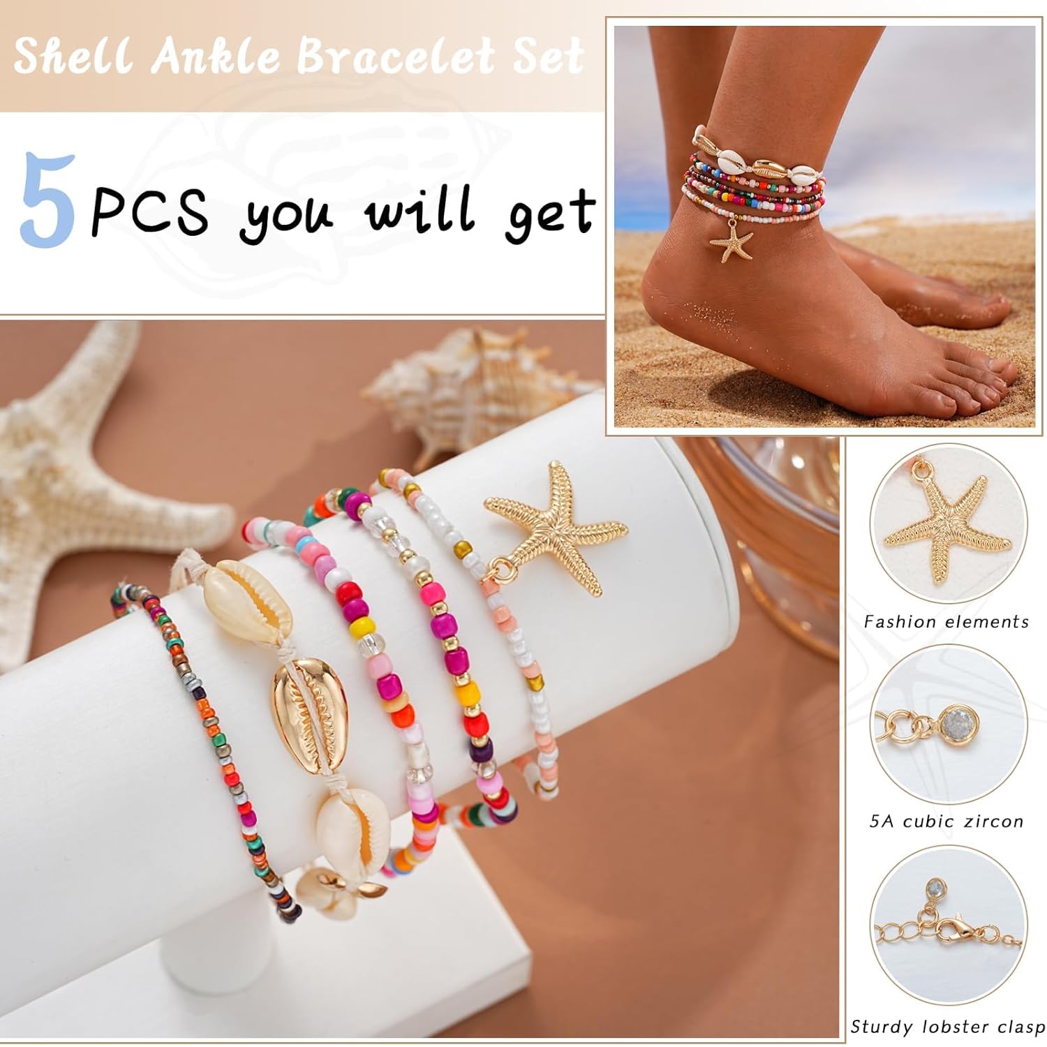 Be the first to review “Boho Shell Ankle Bracelet Set for Women, 5 Pairs 14K Boho Bead Handmade Adjustable Anklet, Hawaiian Beach Seashell Starfish Foot Jewelry Gifts”