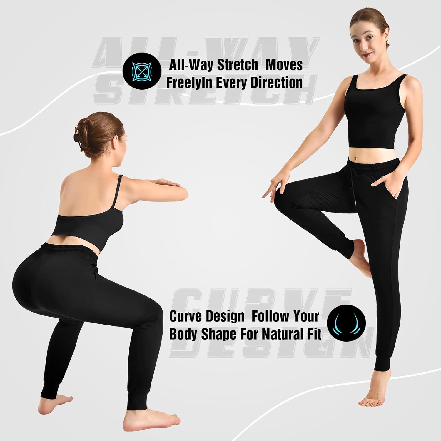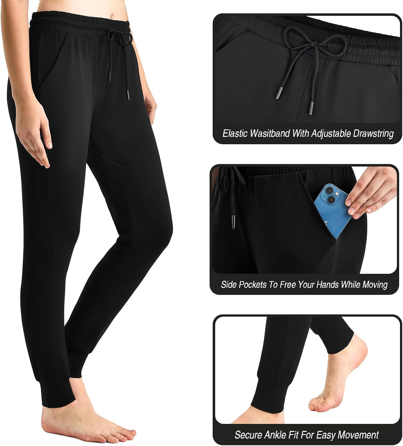 CADITEX Womens Joggers with Pockets,Stretch Active Drawstring Sweatpants Women for Travel Workout Running