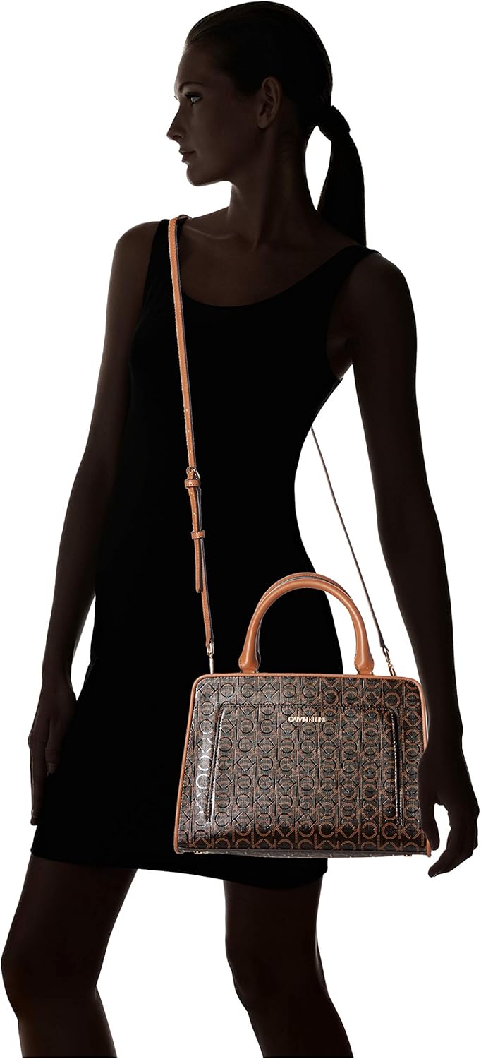 Calvin Klein womens Margot Textured Logo Emboss Satchel