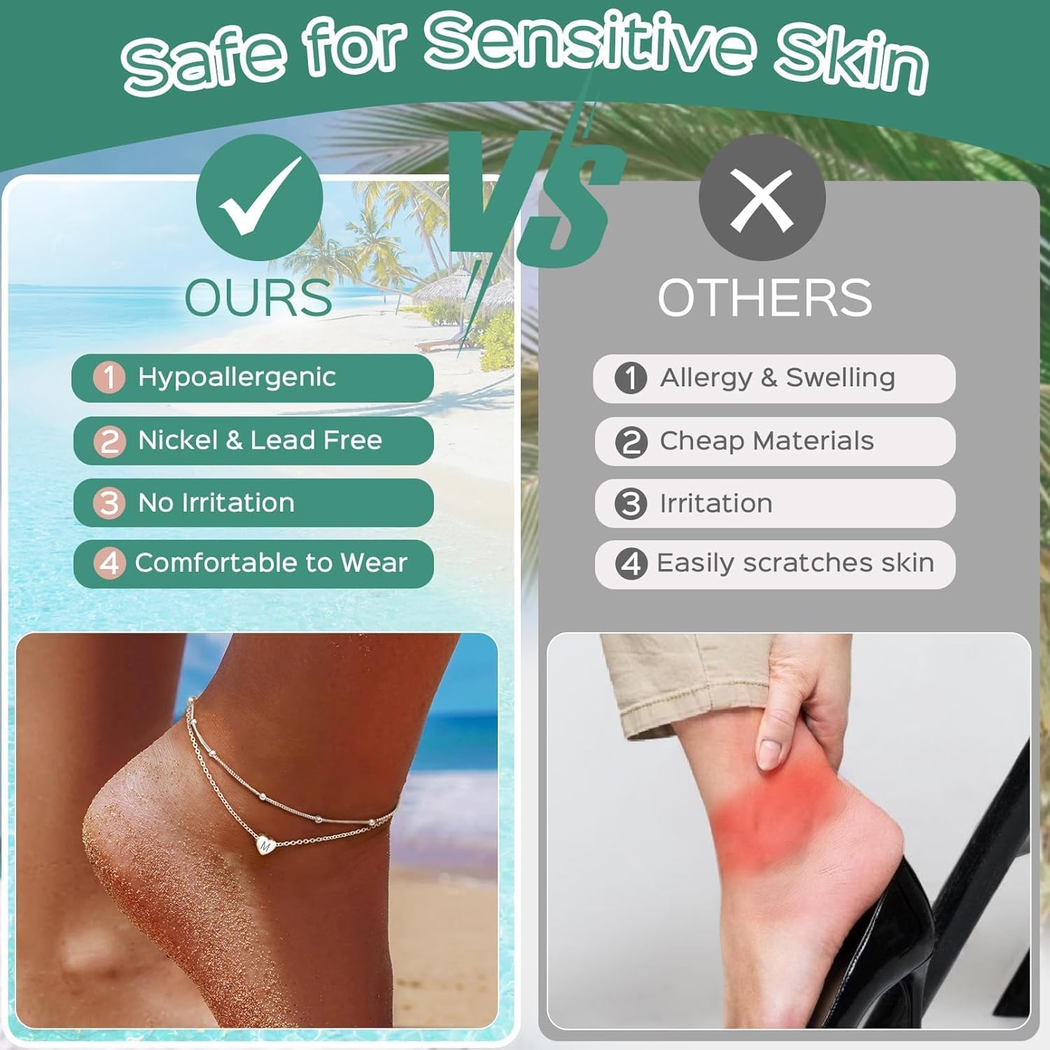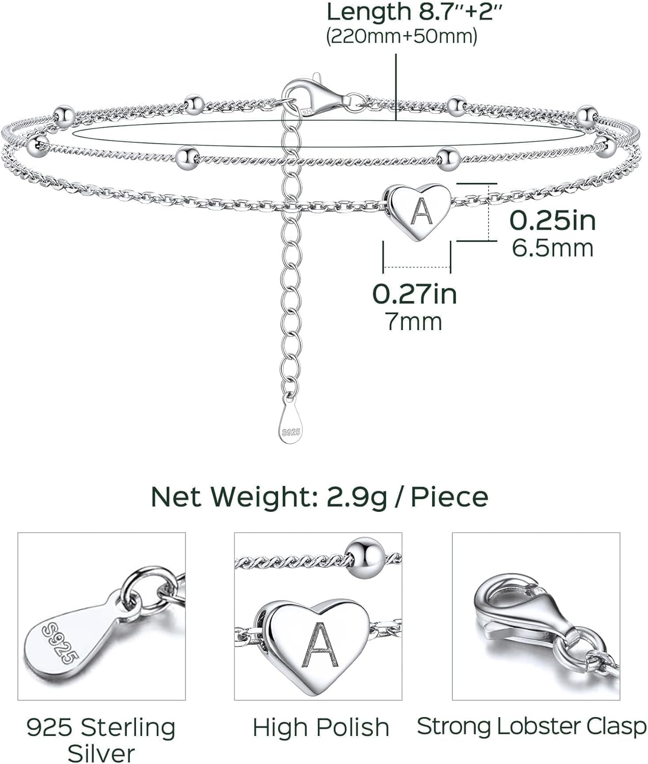 ChicSilver Sterling Silver Anklets for Women 925 Ankle Bracelets for Women Layered Heart Anklet With Beaded Anklets for Women