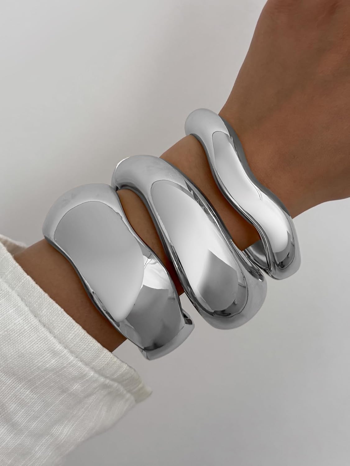Chunky statement cuff bracelet available in both gold and silver tones for mix-and-match styling options