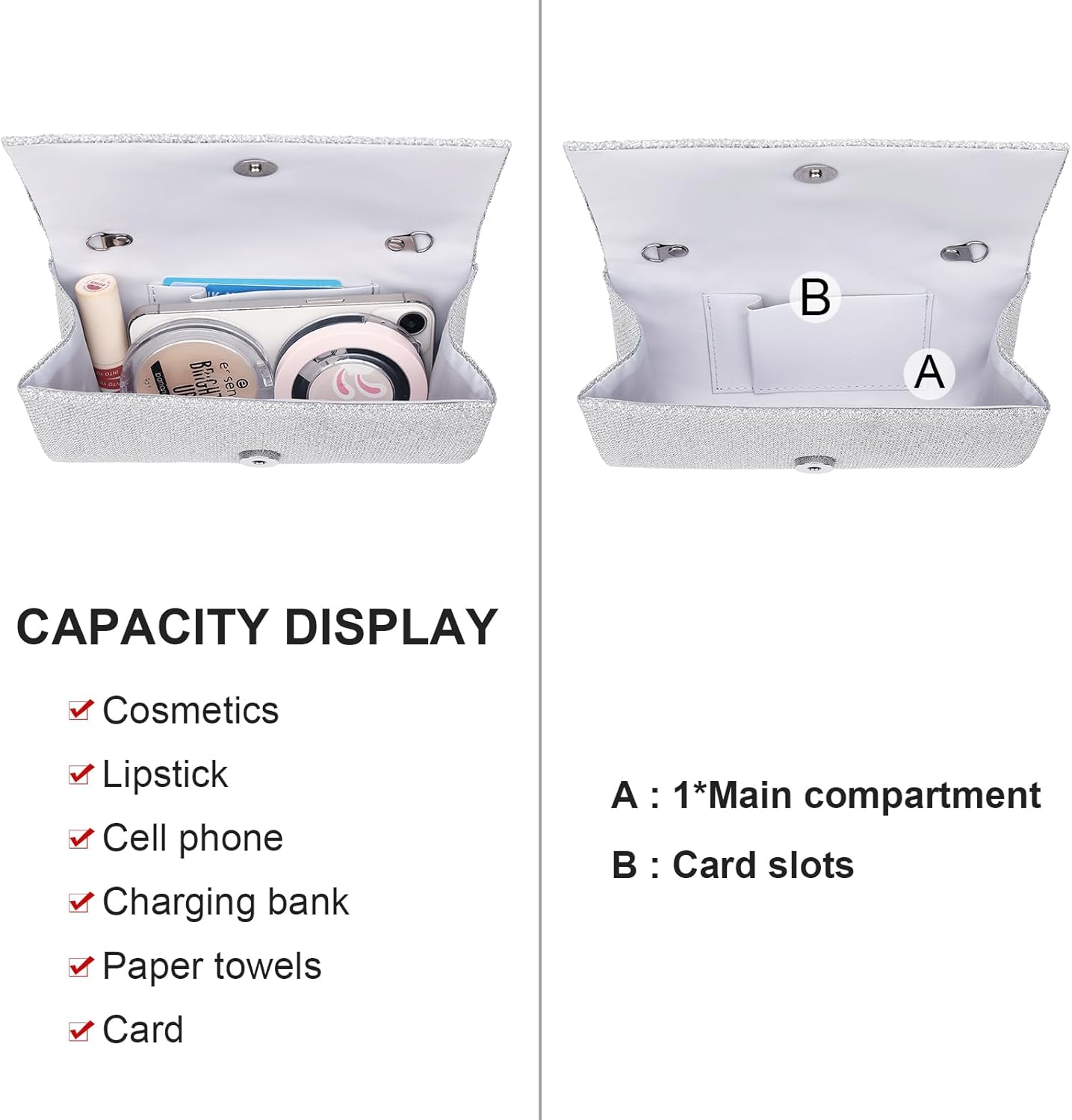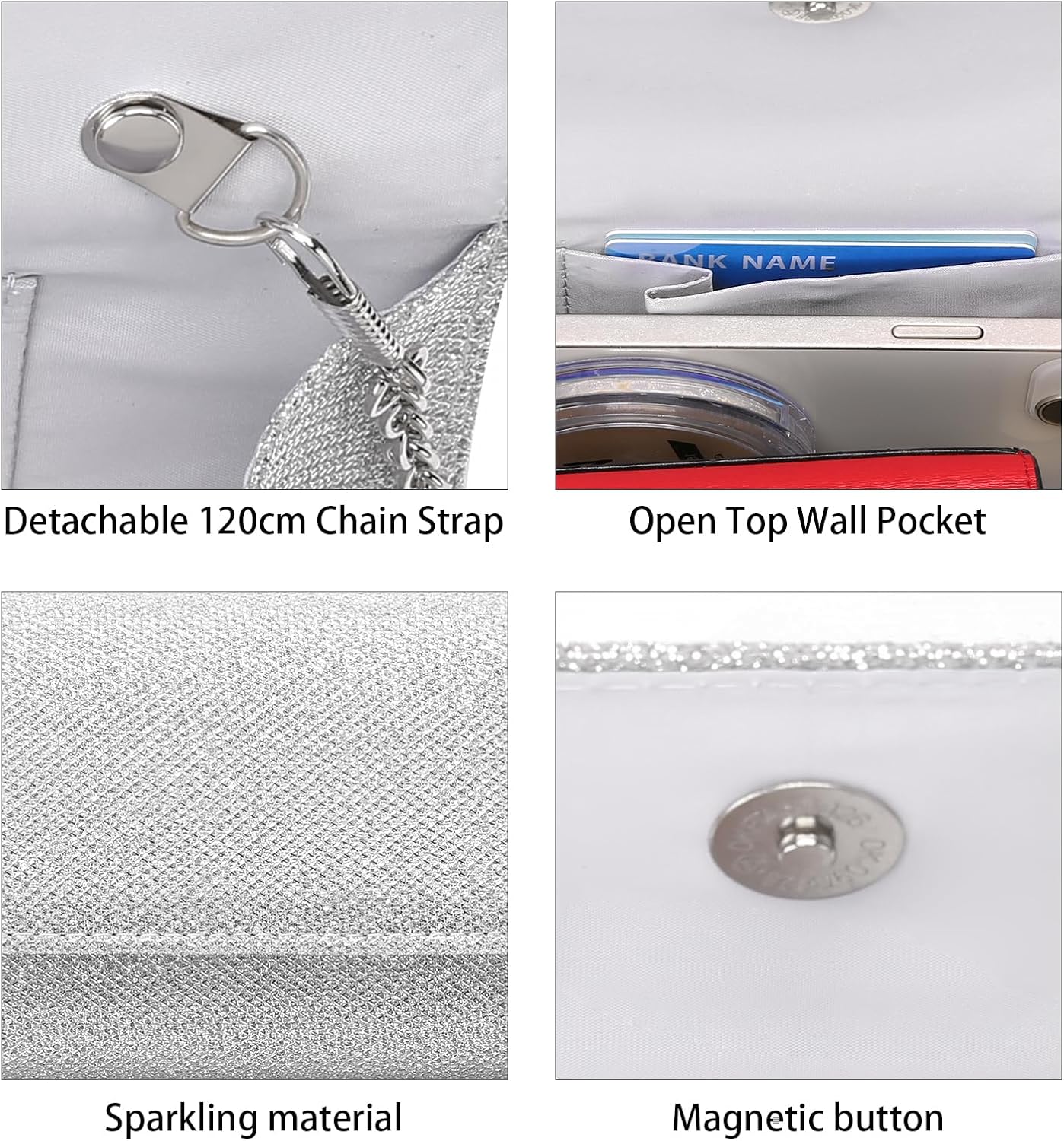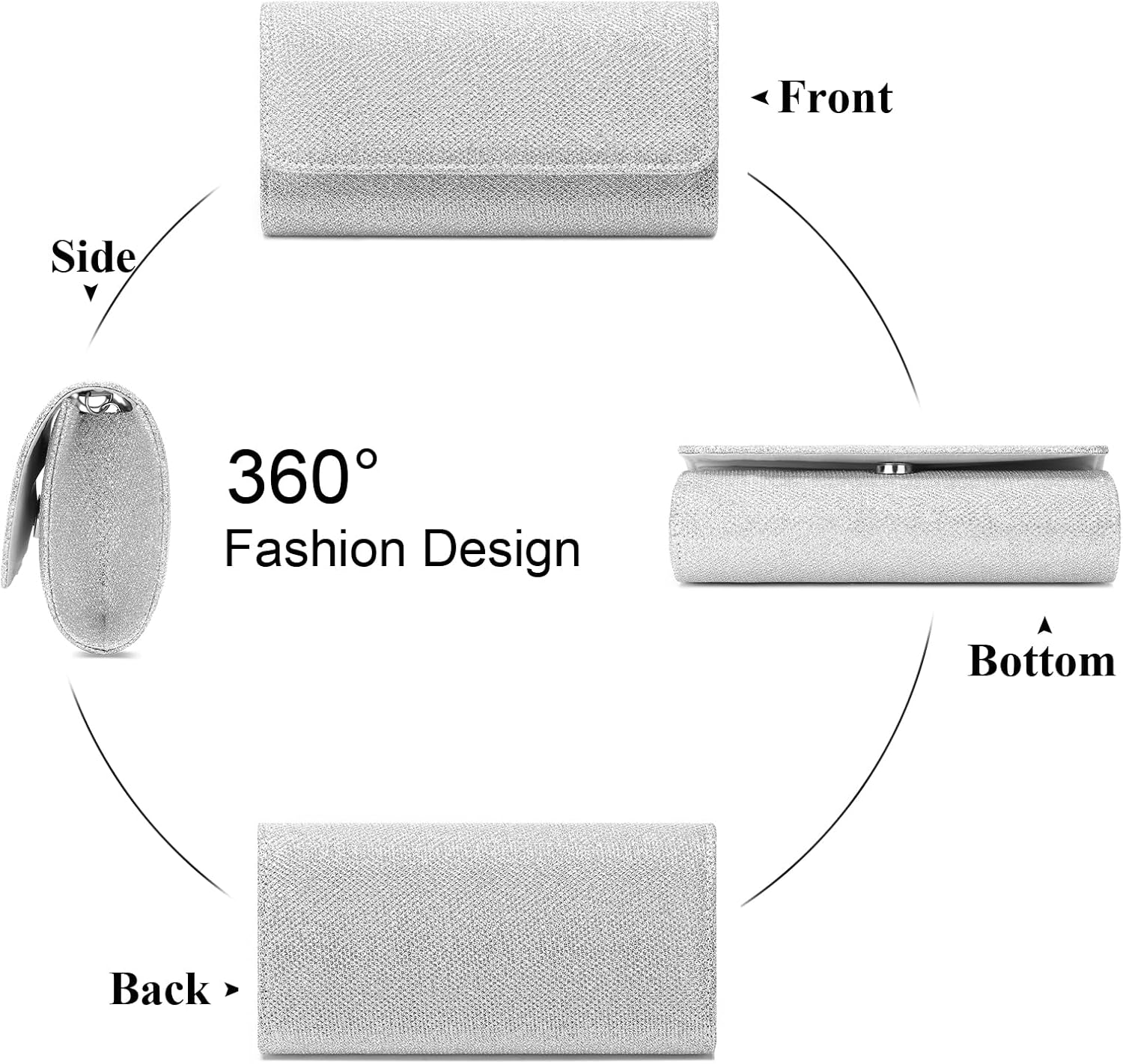 Clutch Purses for Women, Evening Bag with Detachable Chain Ladies Sparkling Party Handbag Wedding Bags