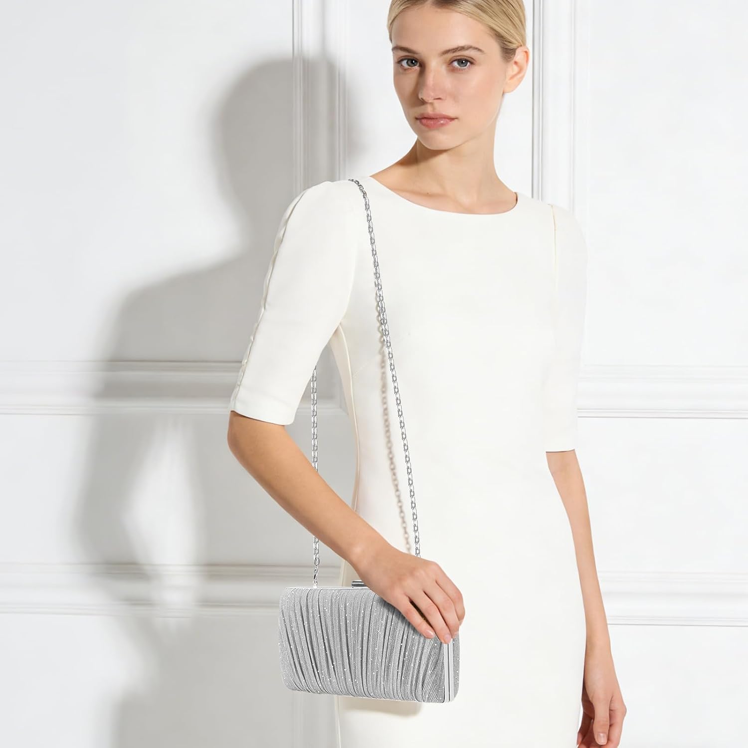 Clutch Purses for Women Evening Clutch Pleated Evening Handbag with Prom Party Wedding Engagement