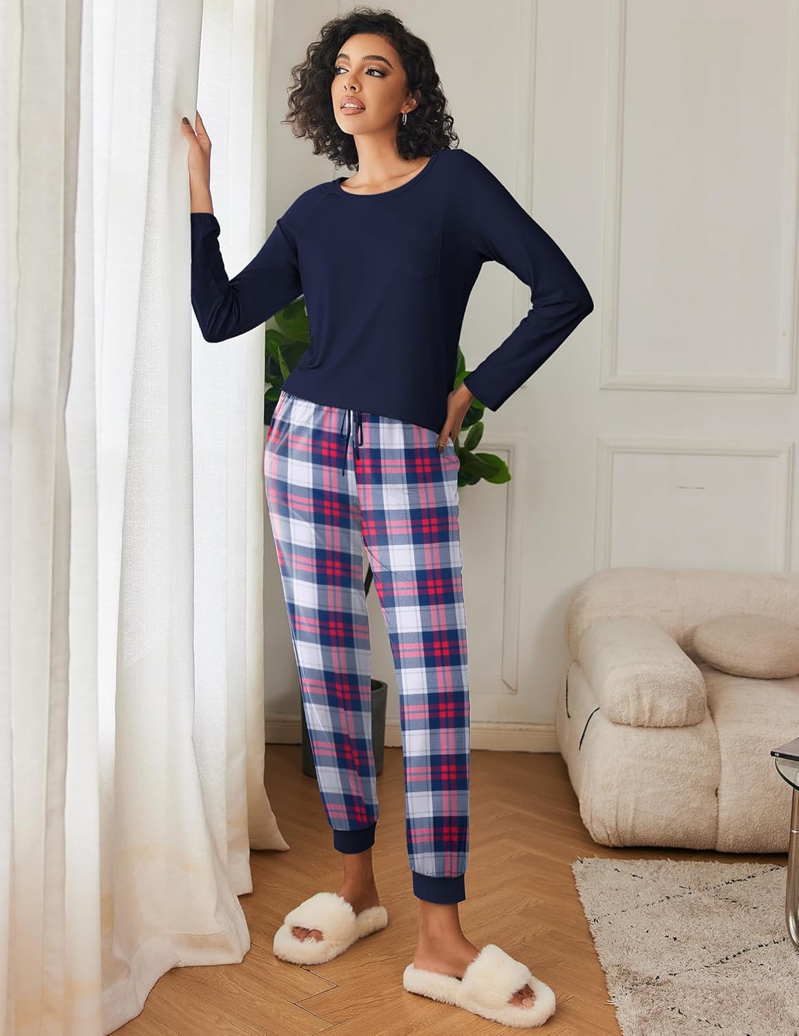 Ekouaer 2 Pack Womens Pajamas Set Jogger Pants Set