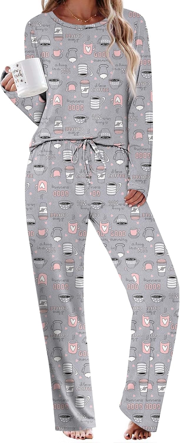 Ekouaer Women’s Pajama Sets Long Sleeve Sleepwear Soft Pj With Pockets