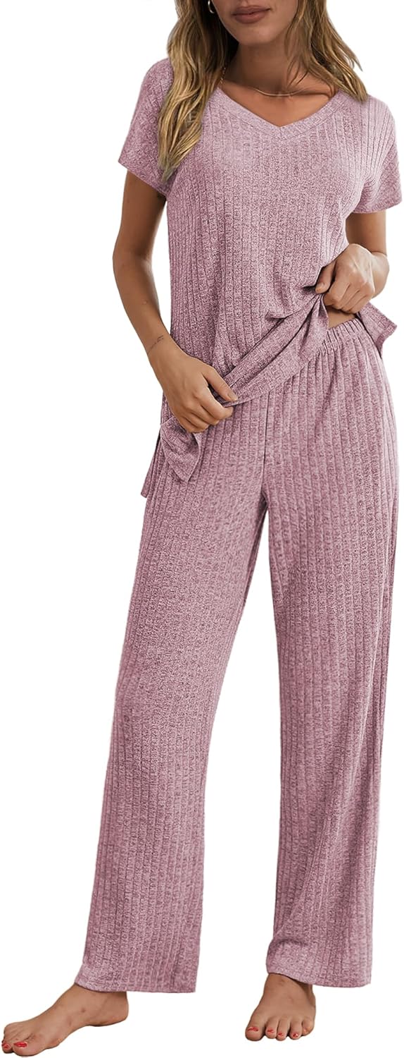 Ekouaer Ribbed Sets for Women 2 Piece Pajamas