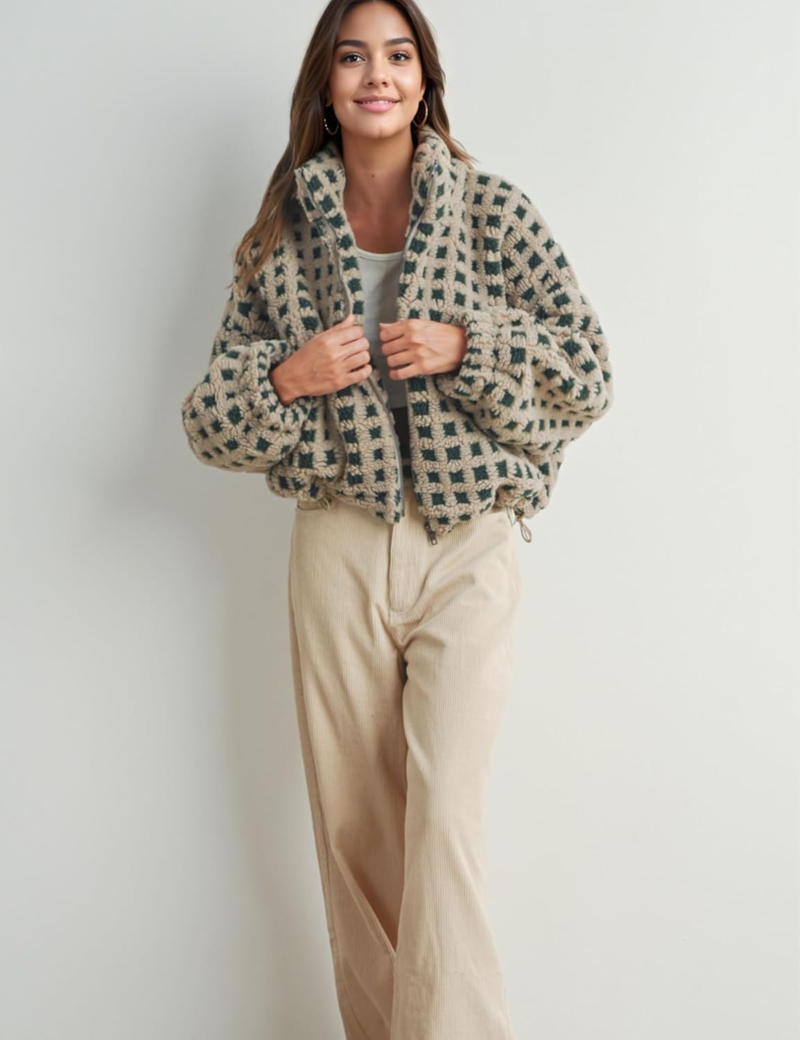 Be the first to review “Esmeling Women’s Long Sleeve Cropped Sherpa Fleece Plaid Jacket Casual Chunky Teddy Fleece Outerwear”