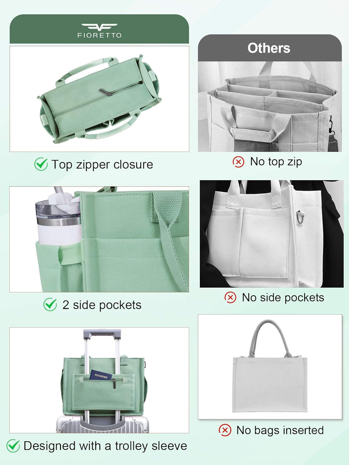 Be the first to review “FIORETTO Womens Canvas Tote Bag Purse with Individual Compartment, Zipper Top, Reinforced Bottom & Luggage Sleeve”