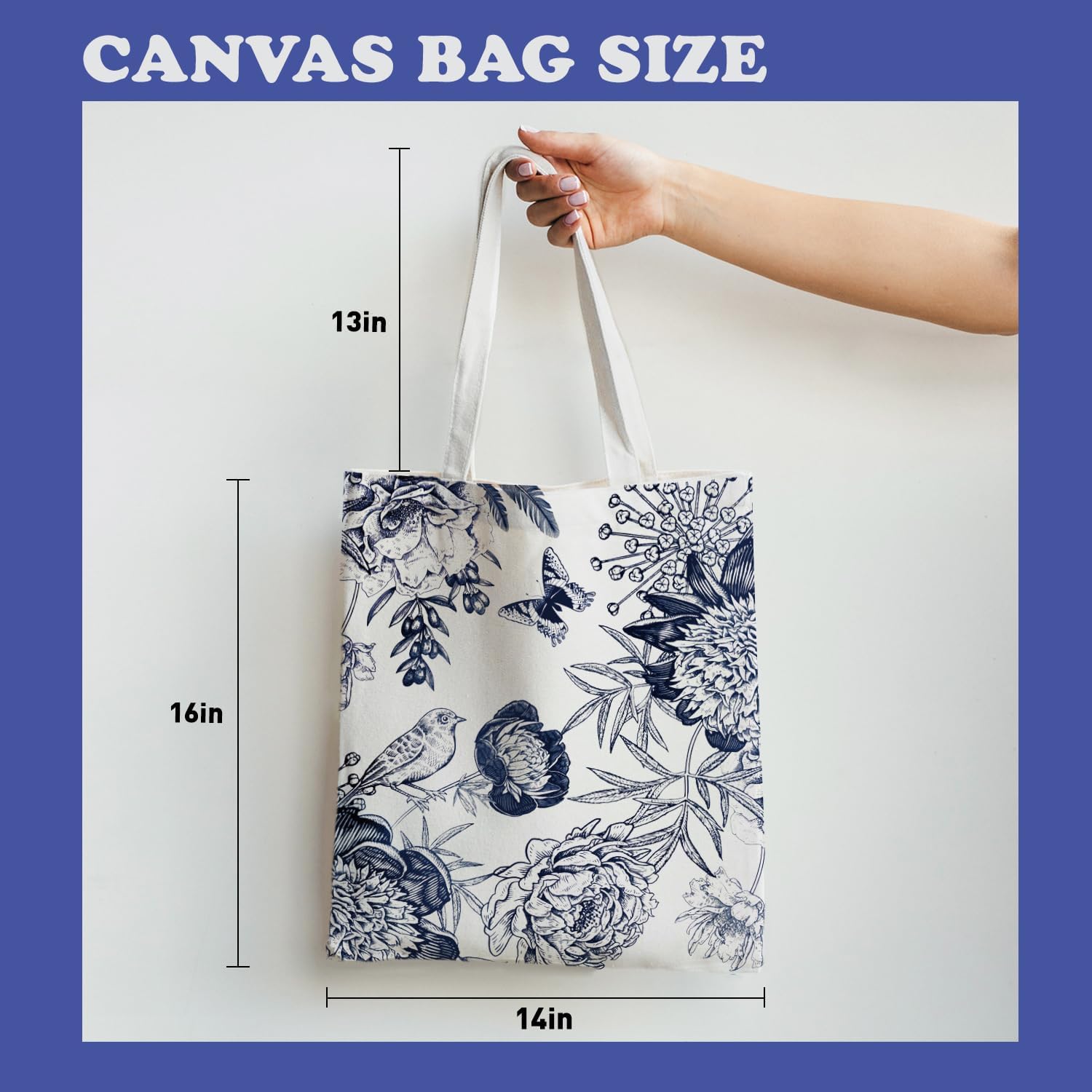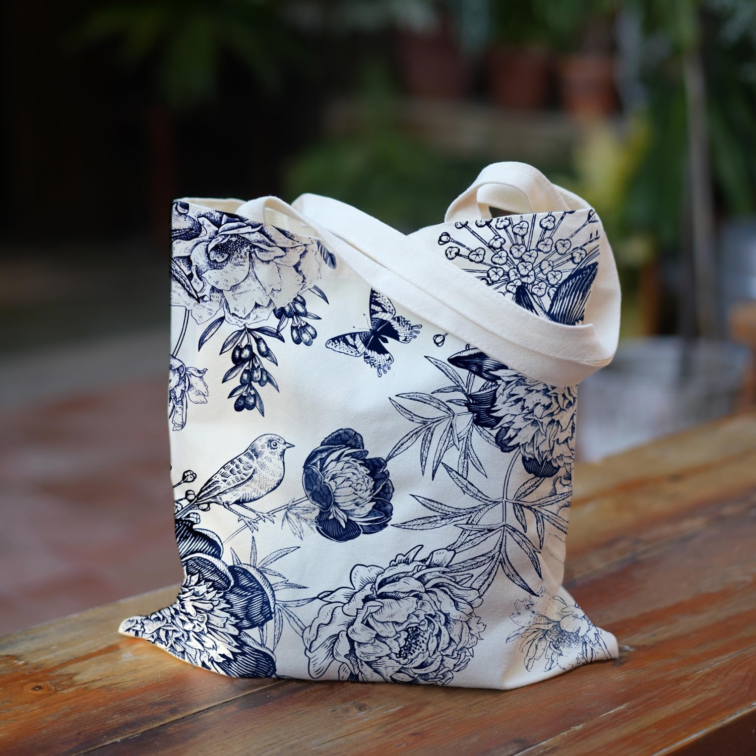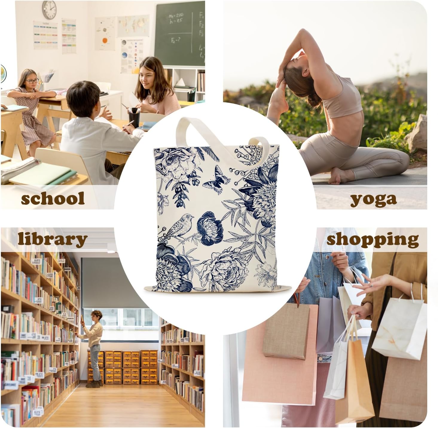Floral Bird Butterfly Aesthetic Tote Bag for Women Mom Sister, Reusable Grocery Shopping Gym Travel Bag