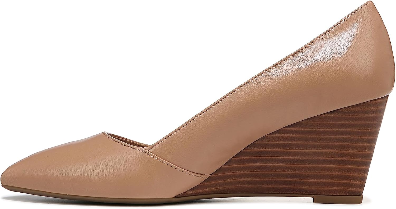 A classic yet modern approach to your pointed wedge heel. Leather upper. Slip-on fit for easy on/off. Pointed toe. Modern and sleek silhouette. 2.5 inch wedge heel.