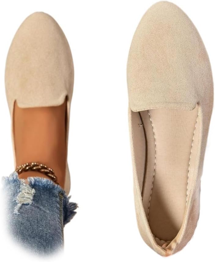 Geerta Women’s Moccasins Plain Pattern Medium Width Pointed Toe Textile Flat Shoes, Casual Comfortable Slip on Shoes for Daily, Footwear Walking Shoes for Fall 2025