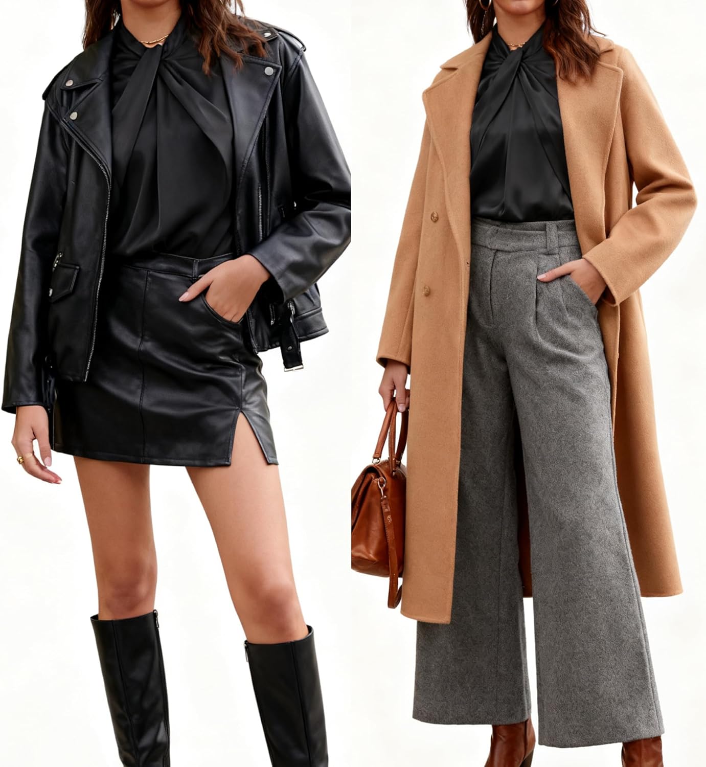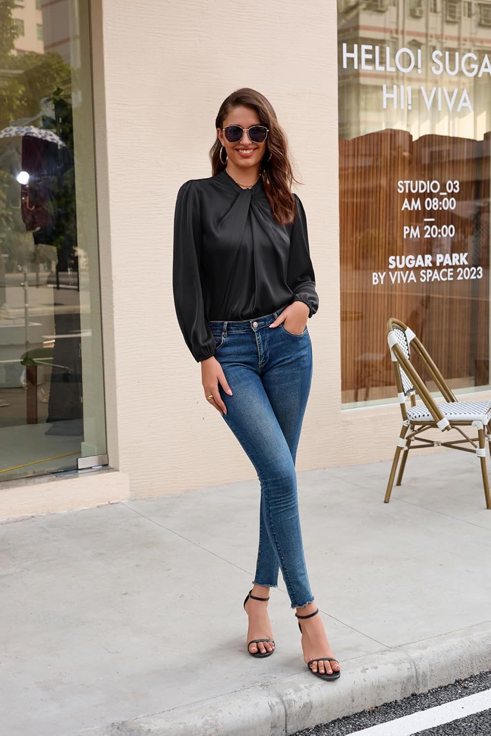—Available in classic black, rich wine, and champagne hues, this blouse easily transitions from day to night, pairing beautifully with jeans, skirts, or tailored pants.