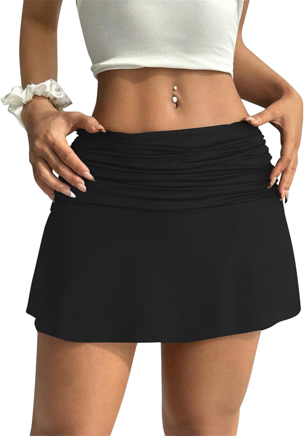 Women’s Slim Fitted Ruched Waist Y2K Skort Casual Mini Skirts with Shorts Vintage 2025 Trendy