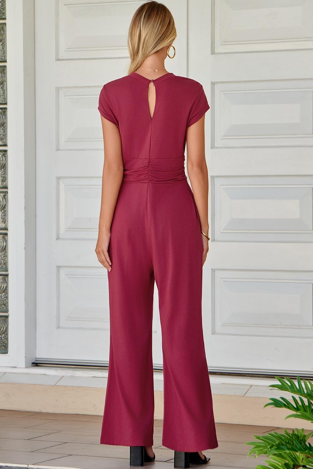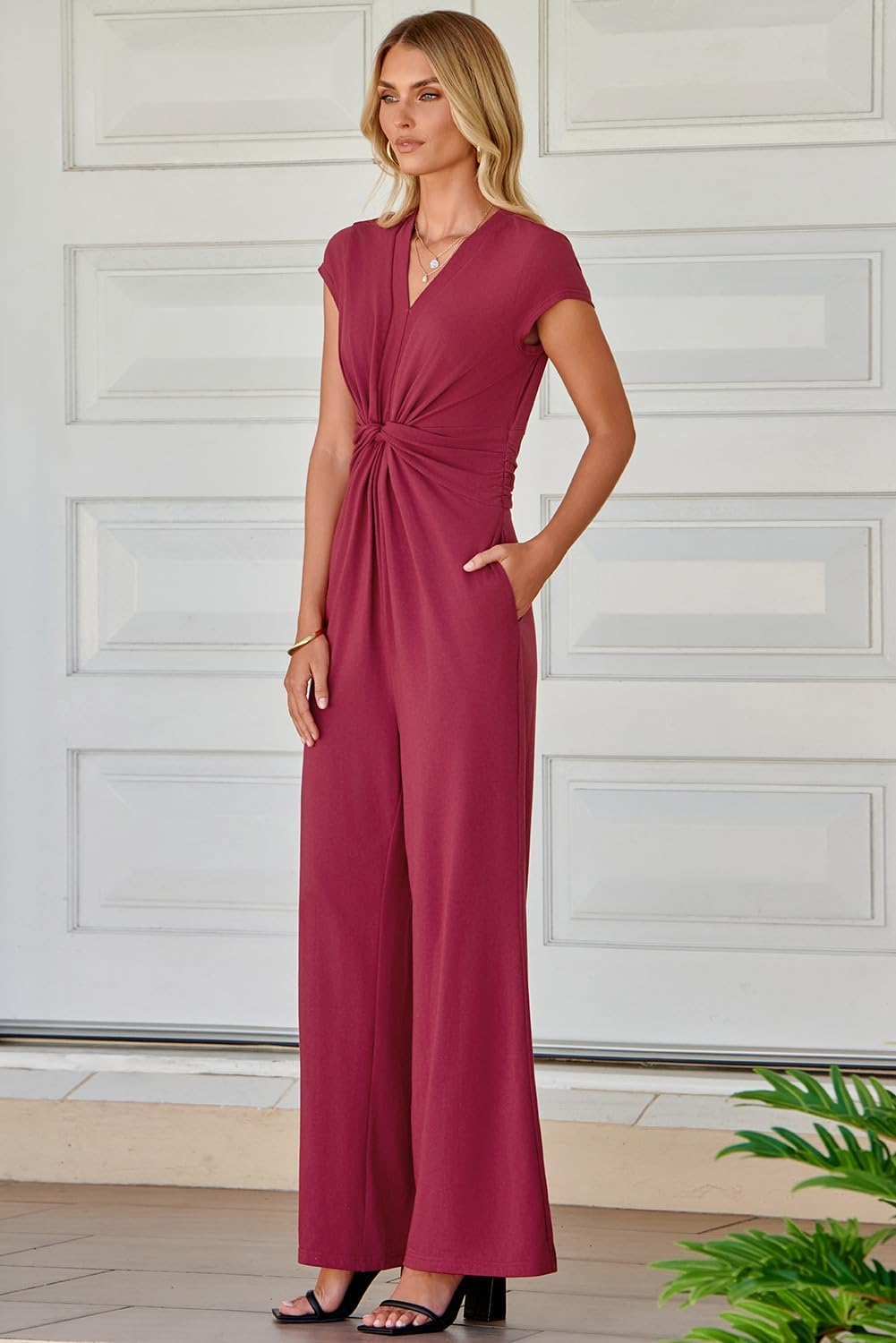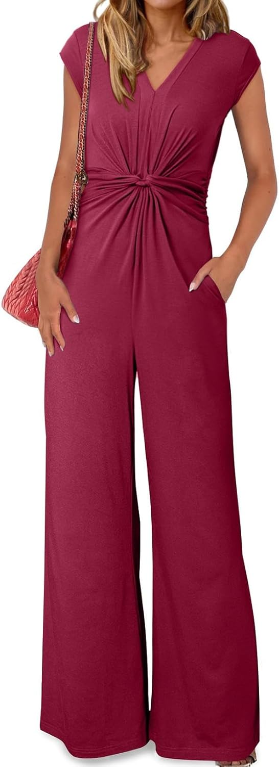 Jumpsuits for Women Dressy Short Sleeve V Neck Twist Front Formal Jumpsuit
