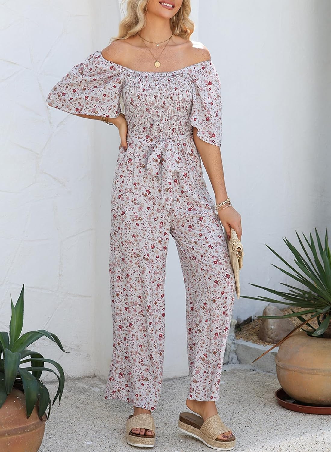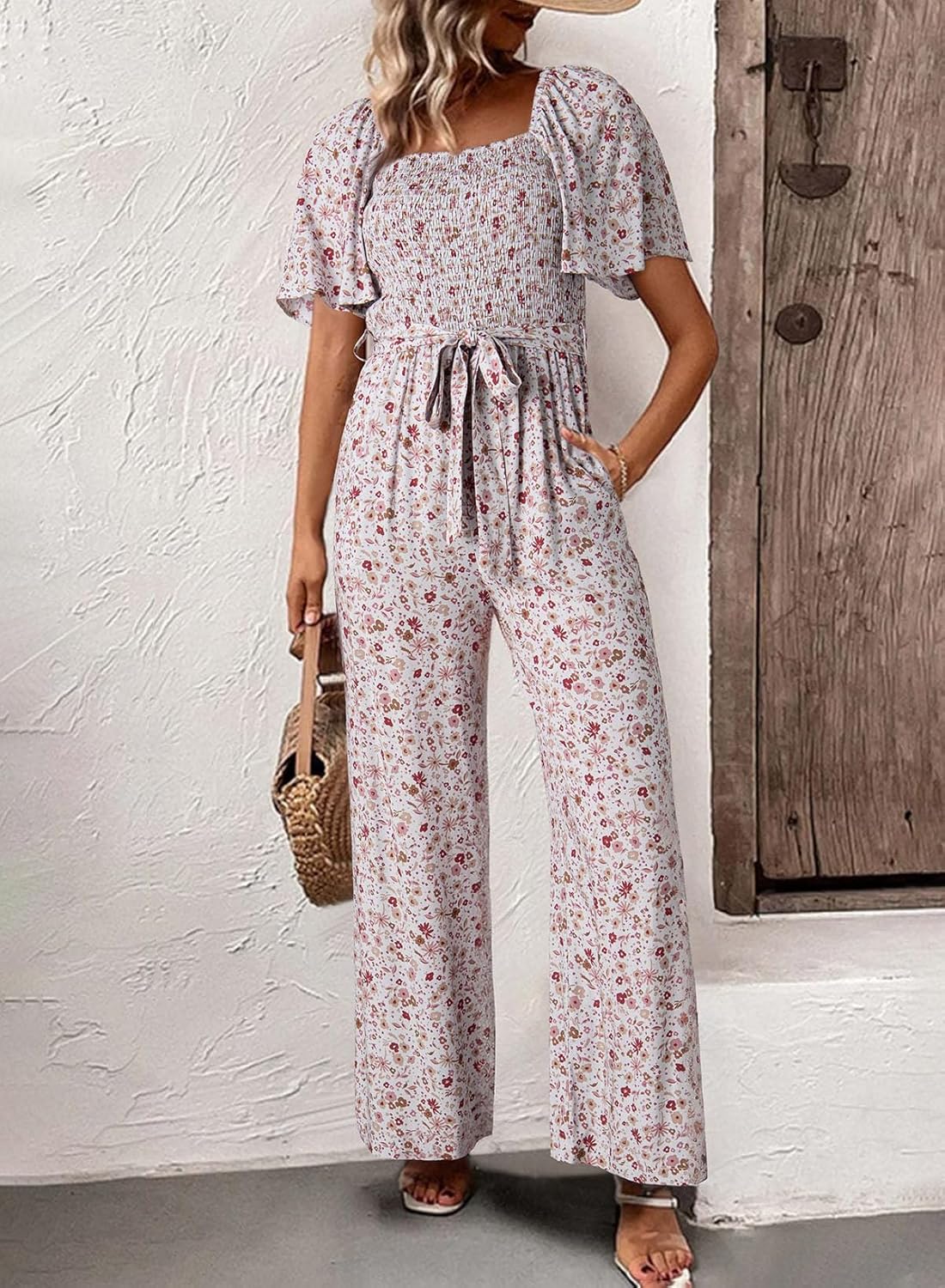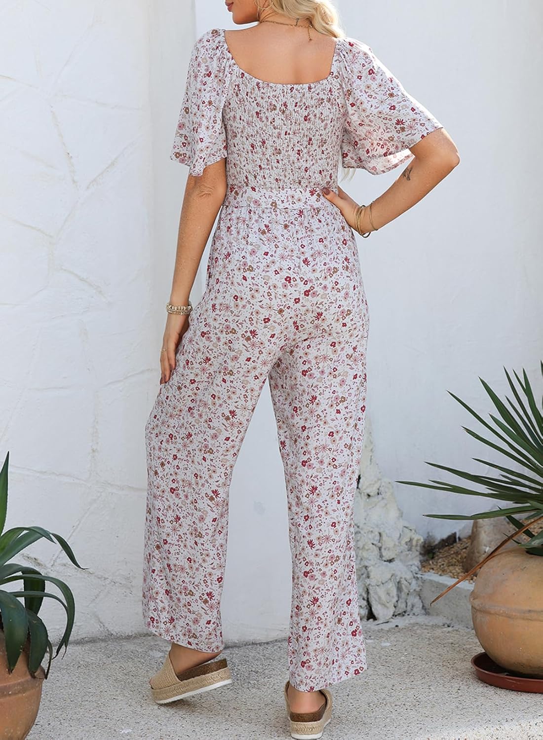 Be the first to review “Happy Sailed Womens Summer Jumpsuits Floral Printed Short Sleeve High Waisted Pockets Wide Leg Rompers Beach Vacation Outfits”