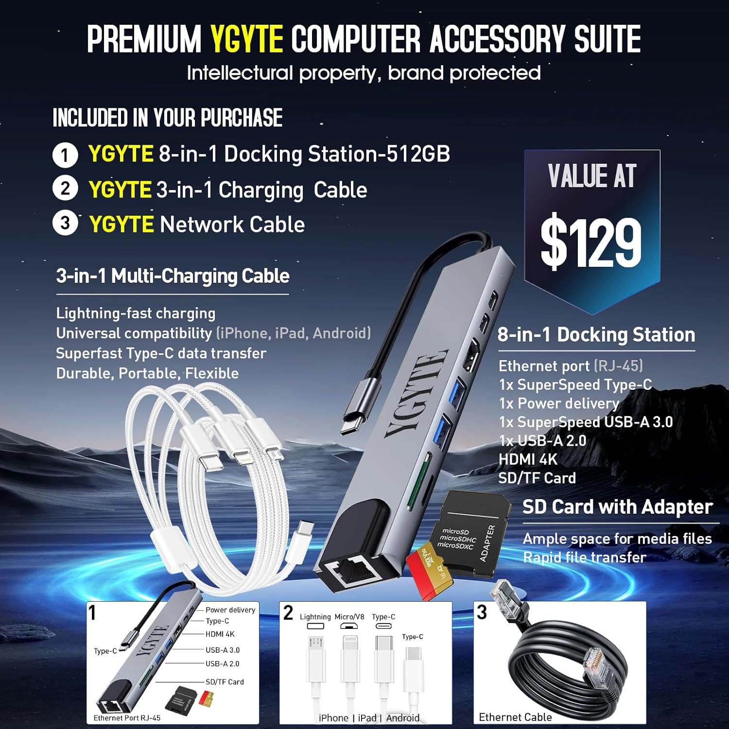 LIMITLESS PRODUCTIVITY – With a long battery time and Lifetime Office included, Windows 11 Pro laptop help you simplify your workday and improve productivity. Blaze through your to-do list with AI-powered multitasking to tackle demanding workloads 42% faster. The windows pro laptop computer features SuperSpeed USB-C, 2x USB-A, Wi-Fi 5 + Bluetooth 5, and a premium accessory suite (8-in-1 512GB docking station with SD card reader & RJ-45 ethernet port, 3-in-1 charging cable, Ethernet cable)