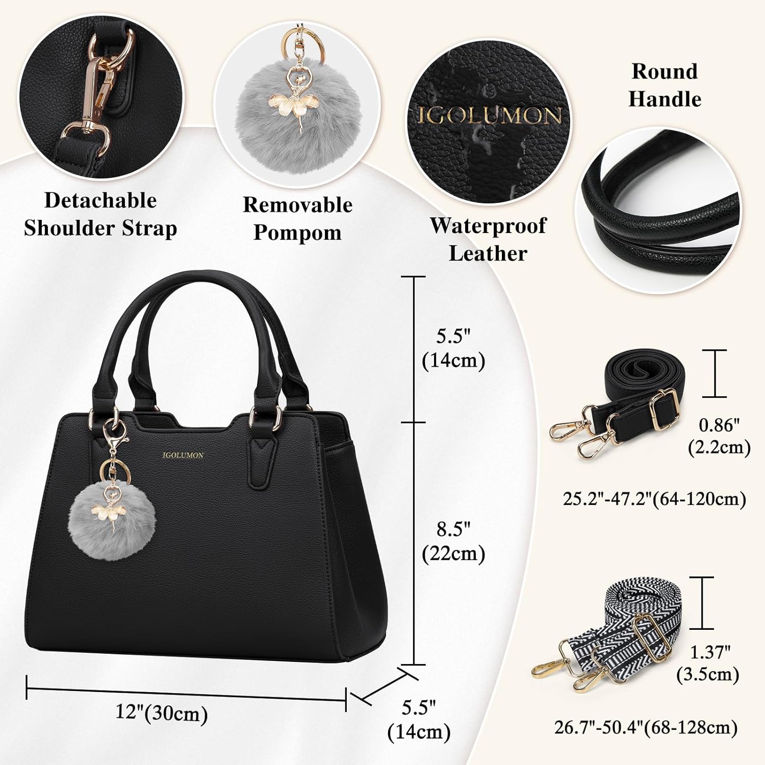 Be the first to review “IGOLUMON Women’s Top-Handle Handbags PU Vegan Leather Satchel Purses for Women Designer Tote Purse Handbag with Cute Pompom”