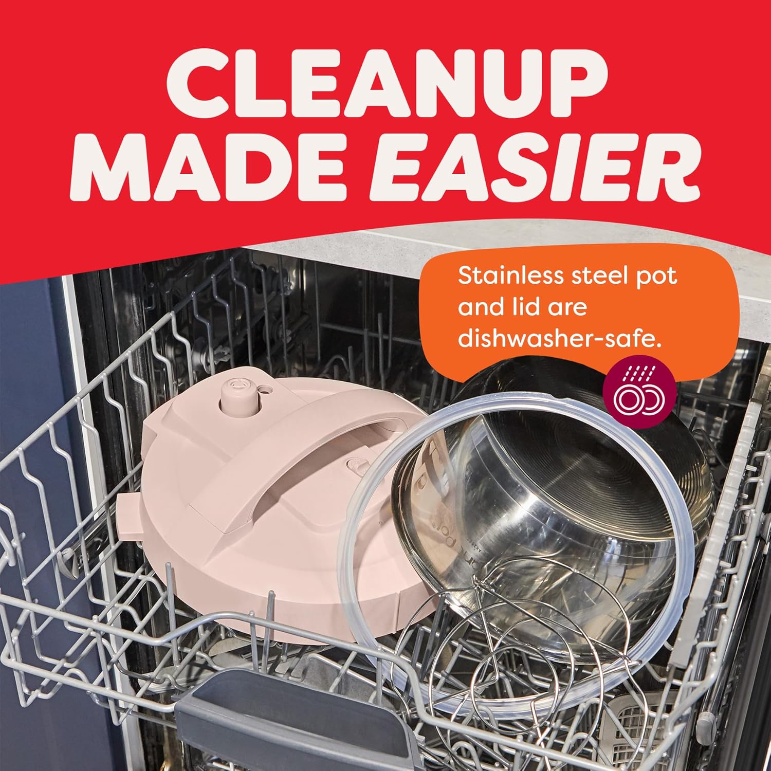 Quick Cleanup: No more fighting about who has to do the dishes. Dishwasher-safe lid and cooking stainless steel pot make cleaning a breeze
