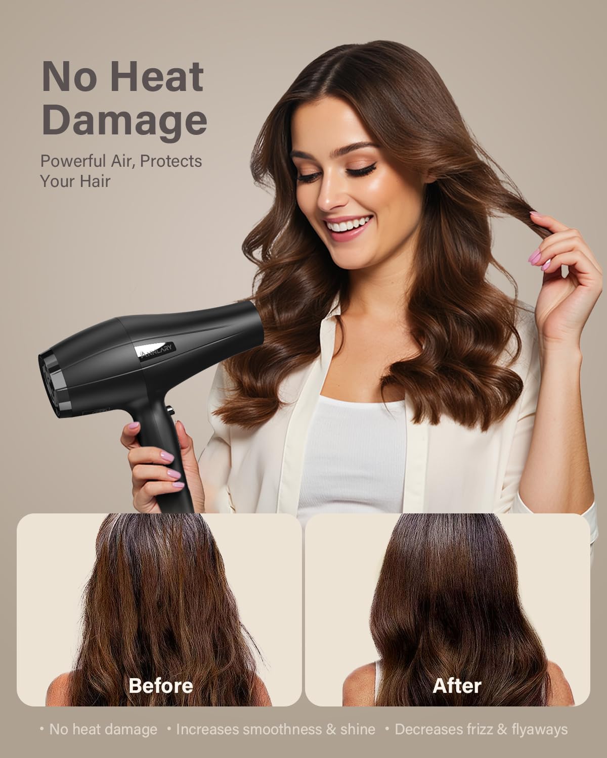 Next-Level Drying Power – Powered by a professional-grade 1875W AC motor, this dryer delivers higher airflow, faster wind speed, and greater power than ordinary hair dryers, even outperforming many high-speed models—cutting drying time while keeping hair smooth and healthy.