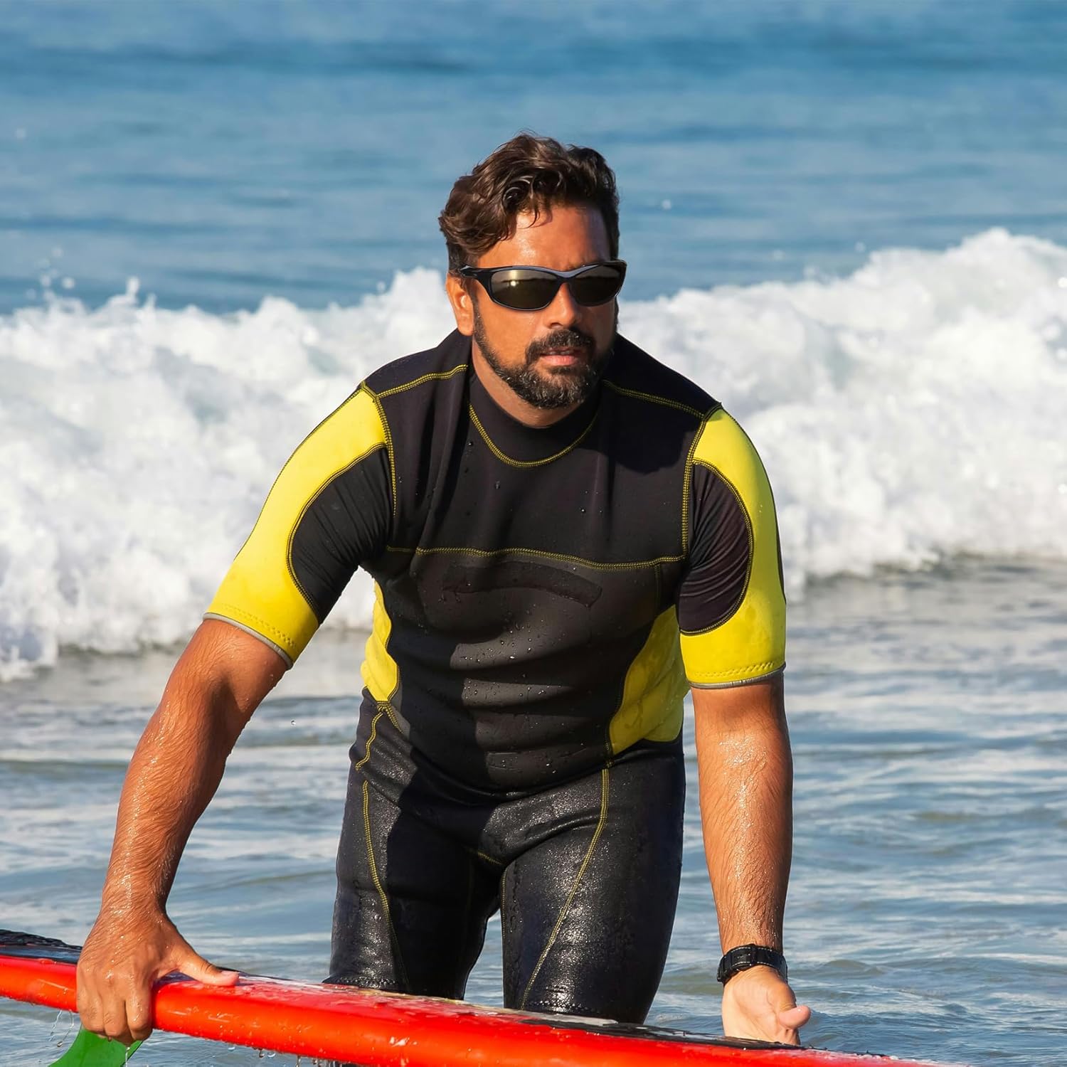 High Definition Polarized Lenses: Polarized sunglasses are a must-have feature for many athletes, especially for those who don’t want glare to interfere with their performance on the field, court, or golf course. Sporty sunglasses provides polarization, can reduce reflected glare. The classic rectangle sports shades are an excellent choice for you when you are driving, fishing, hiking, boat, running, walking, playing golf, skiing, rock climbing, sunbathing on the beach