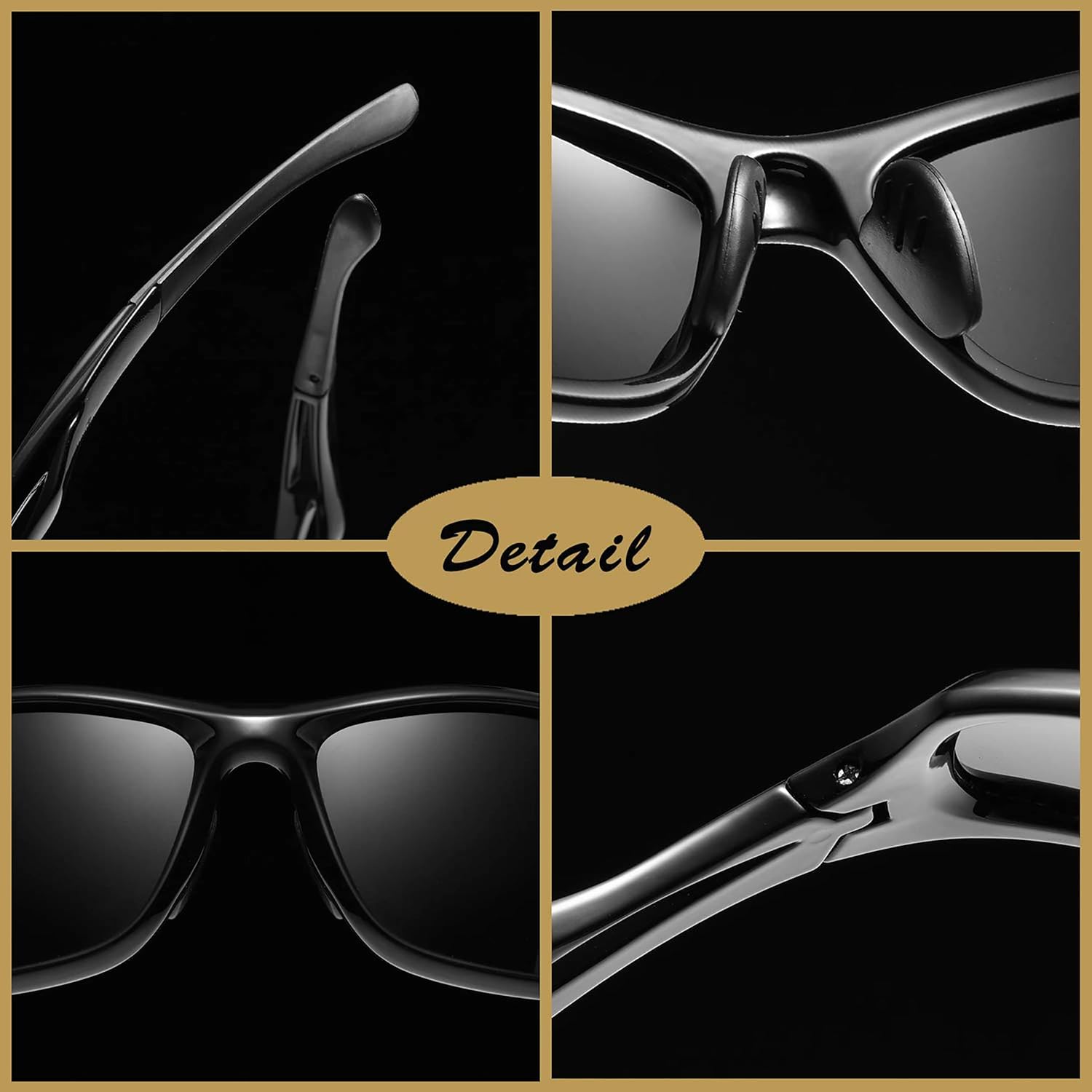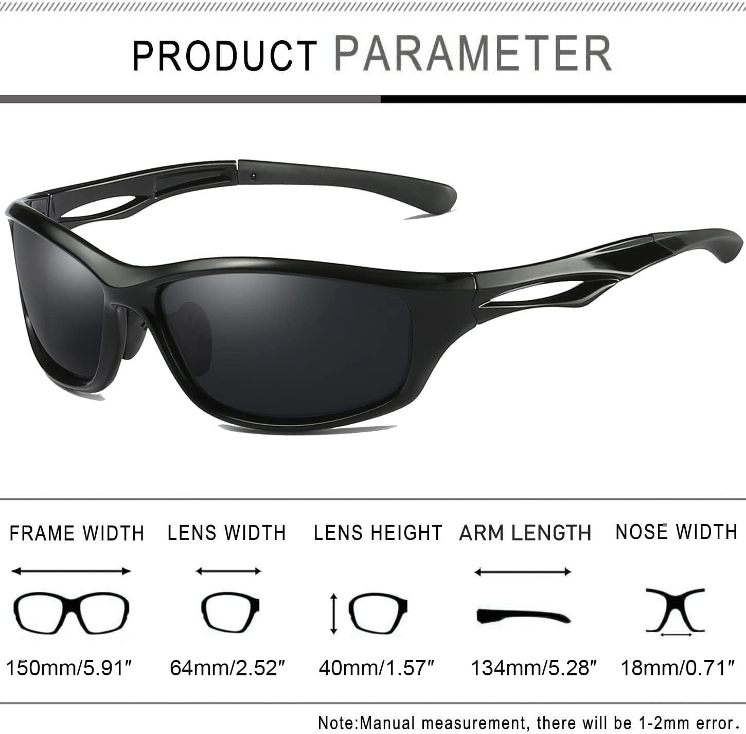 Performance Meets Style: Modern style, clear vision and super lightweight. Safety sunglasses are suitable for most outdoor activities such as motorcycles and bicycles, cycling, driving, running, walking, fishing, boating, playing golf, skiing, rock climbing, hiking, playing on the beach. The anti-slip nose pads and hollow arms design make the wrap around sunglasses stay put no matter how much you are moving and sweating. Big black sunglasses give your adventure better vision