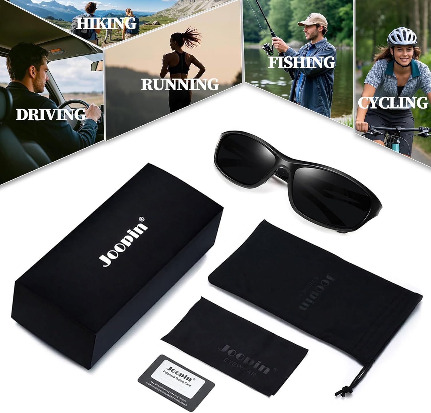 Exquisite Box Packaged: Gloss black sunglasses x1 / soft box x1 / exquisite bag x1 / lens cloth x1 / polarized testing card x1. It is packaged already, making the unsiex sunglasses a wonderful yet practical festival idea for friends and family. Show your true style and reach your peck with real functional sports glasses. Stay cool with black sun glasses. Joopin focuses on fashion womens sunglasses and mens sunglasses.Click and get your quality and cheap sunglasses now