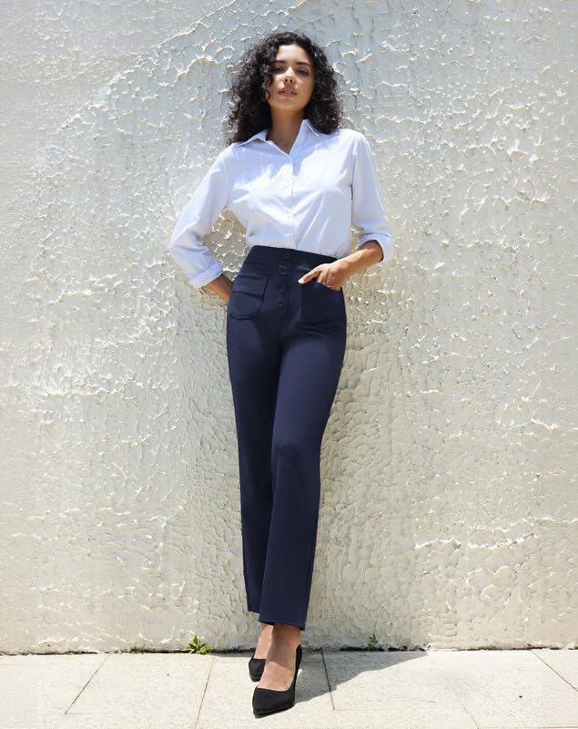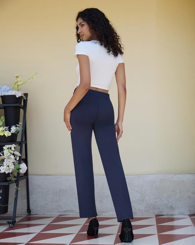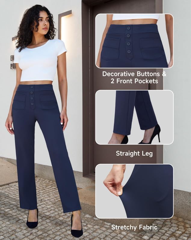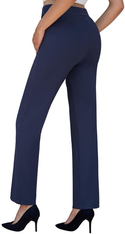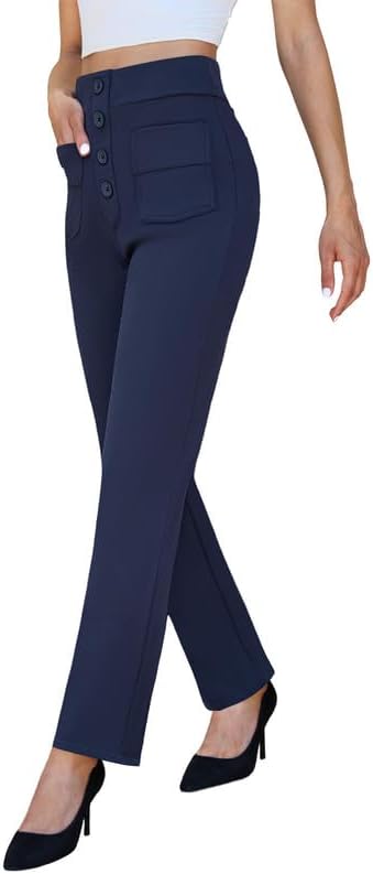 keriffe High Waist Stretchy Womens Dress Pants with Pockets Straight Leg Business Casual Work Trousers Office Slacks