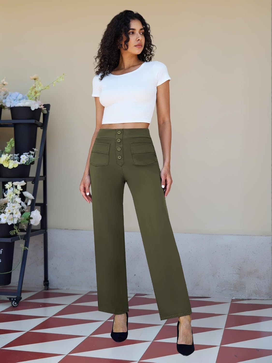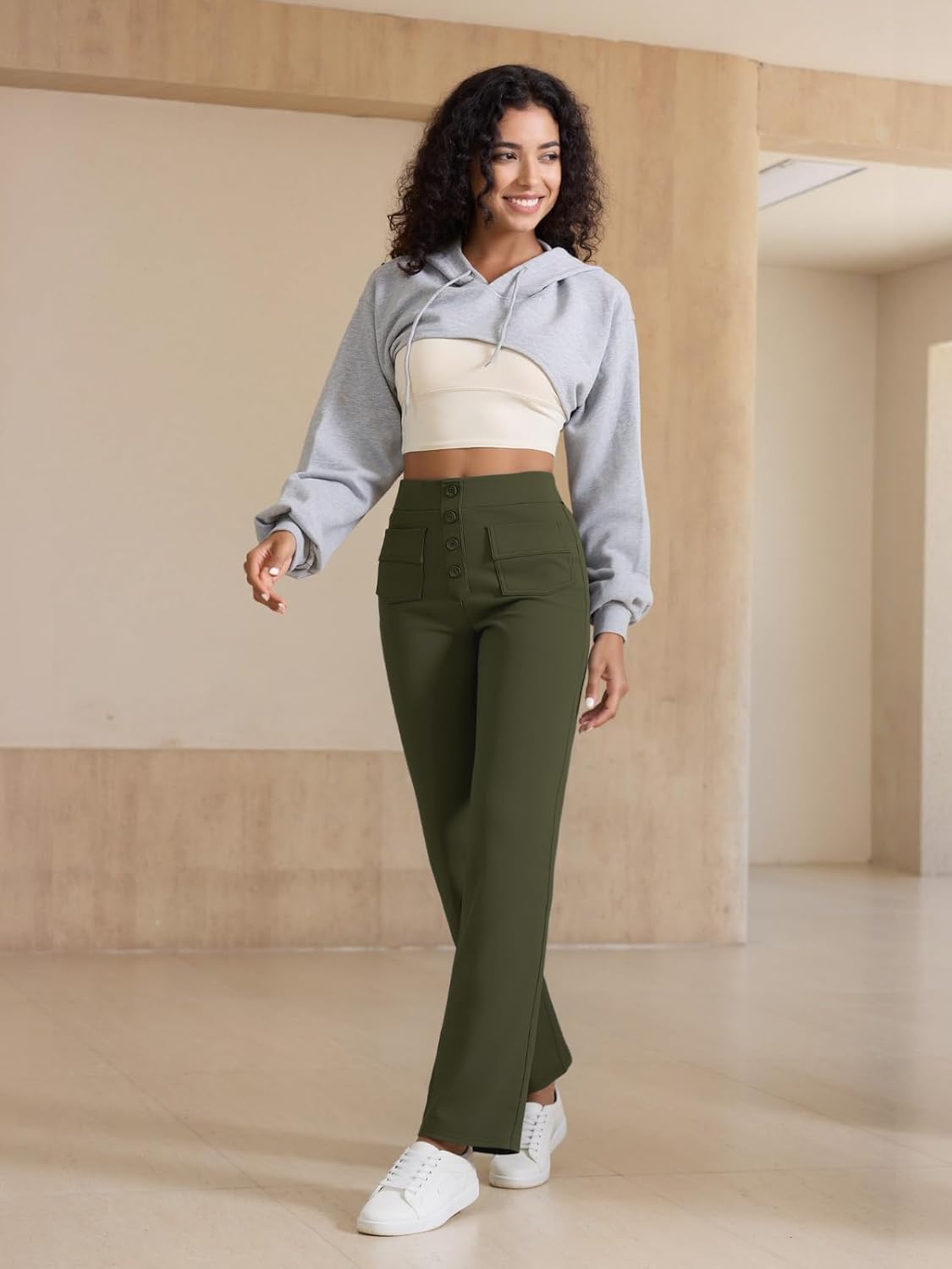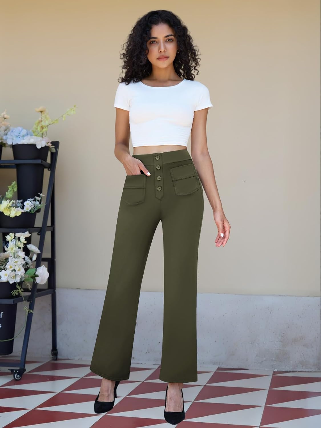 Be the first to review “keriffe Women’s Straight Leg Pants High Waisted Button Stretchy Business Work Dress Casual Trousers Multiple Pockets”