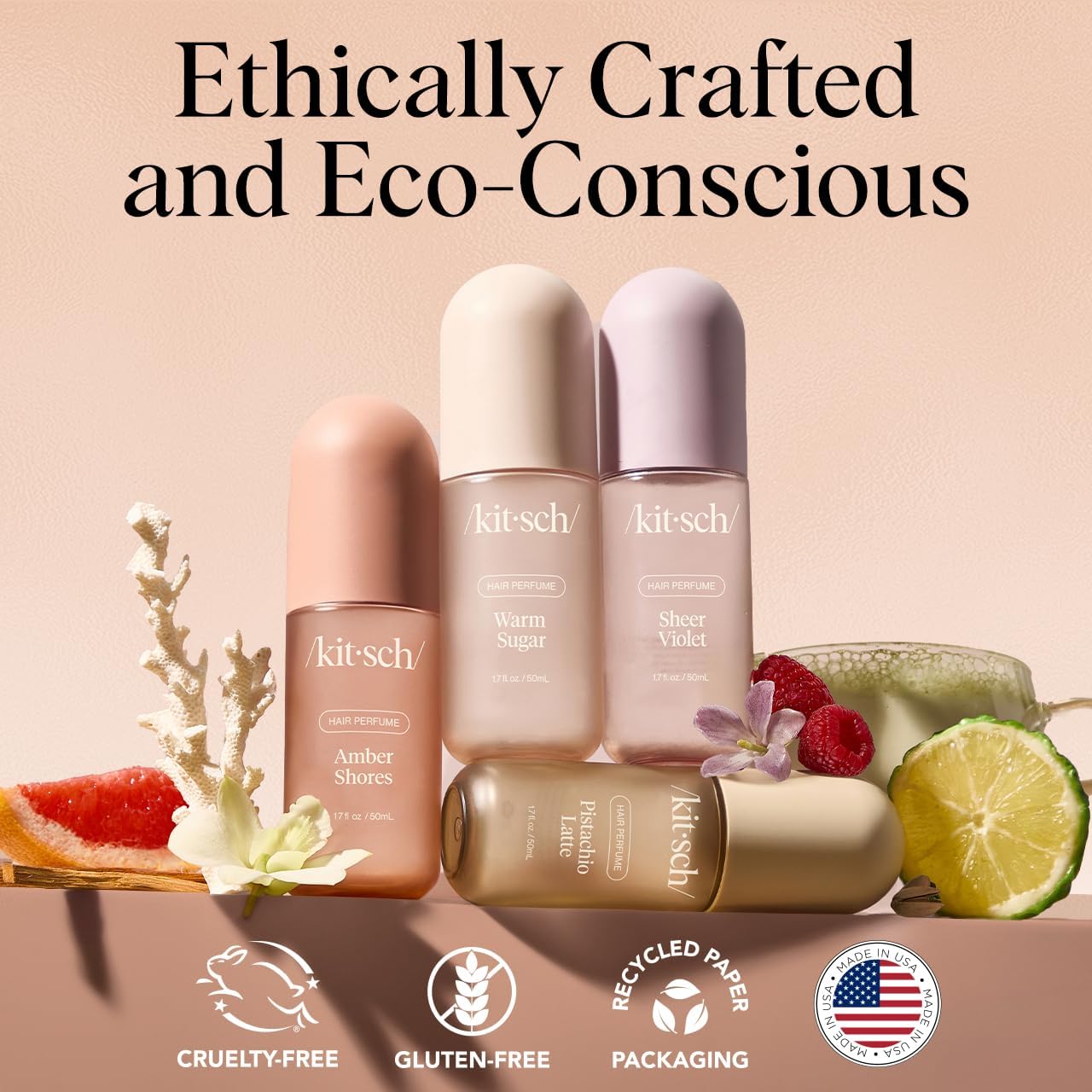 CLEAN INGREDIENTS, CONSCIOUS FORMULA: Our Kitsch Hair Perfume is vegan, cruelty-free, and free from phthalates, parabens, PFAS, and synthetic CMRs. The 50mL size is ideal for on-the-go freshness, and the bottle is made with 30% PCR material—because great hair days shouldn’t come at the planet’s expense.