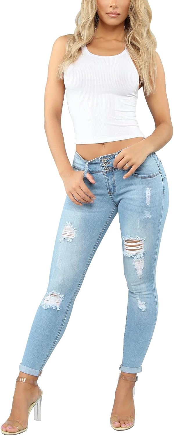 Be the first to review “KUNMI Women’s Skinny Ripped Trendy Jeans Distressed Stretchy Denim Pants”