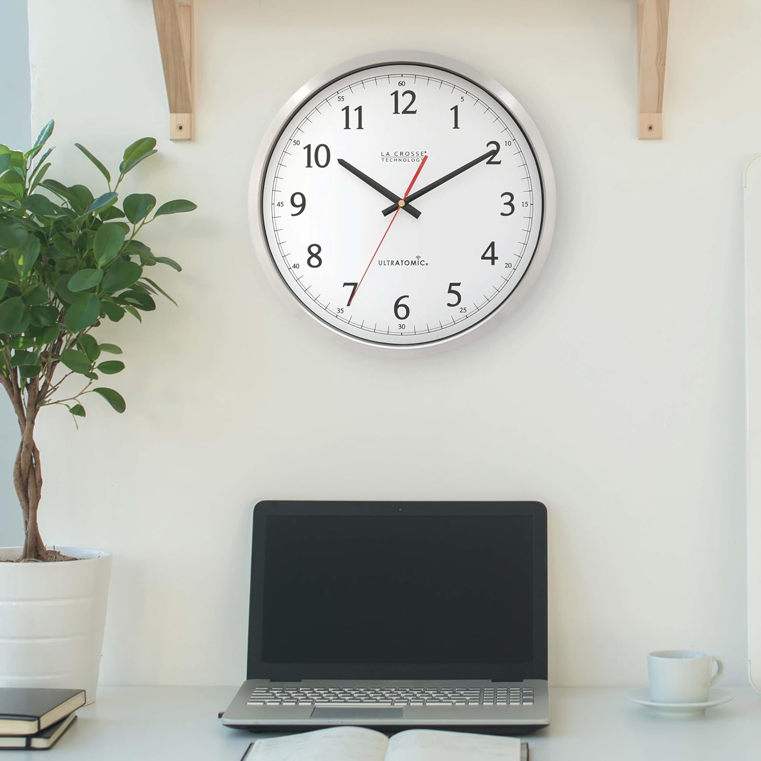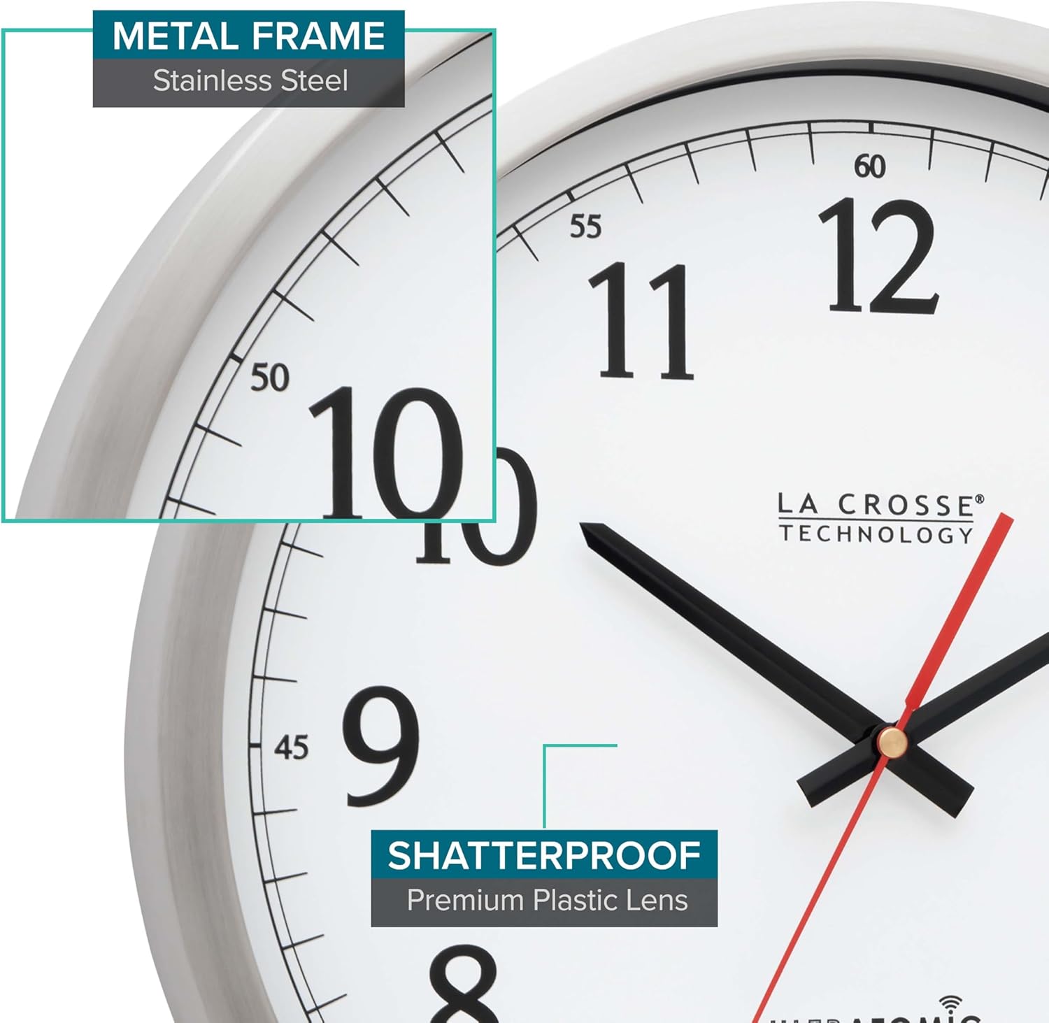 La Crosse Technology 404-1235UA-PL UltrAtomic 14 inch Stainless Steel Wall Clock, Shatterproof Lens, Silver