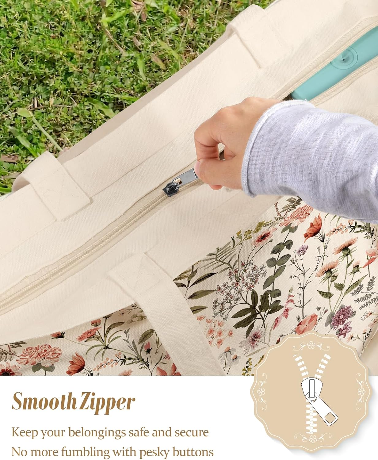 Large Tote Bag for Women – Canvas Tote Bag with Zipper Aesthetic Reusable Shoulder Bag for Gym, Travel, Work