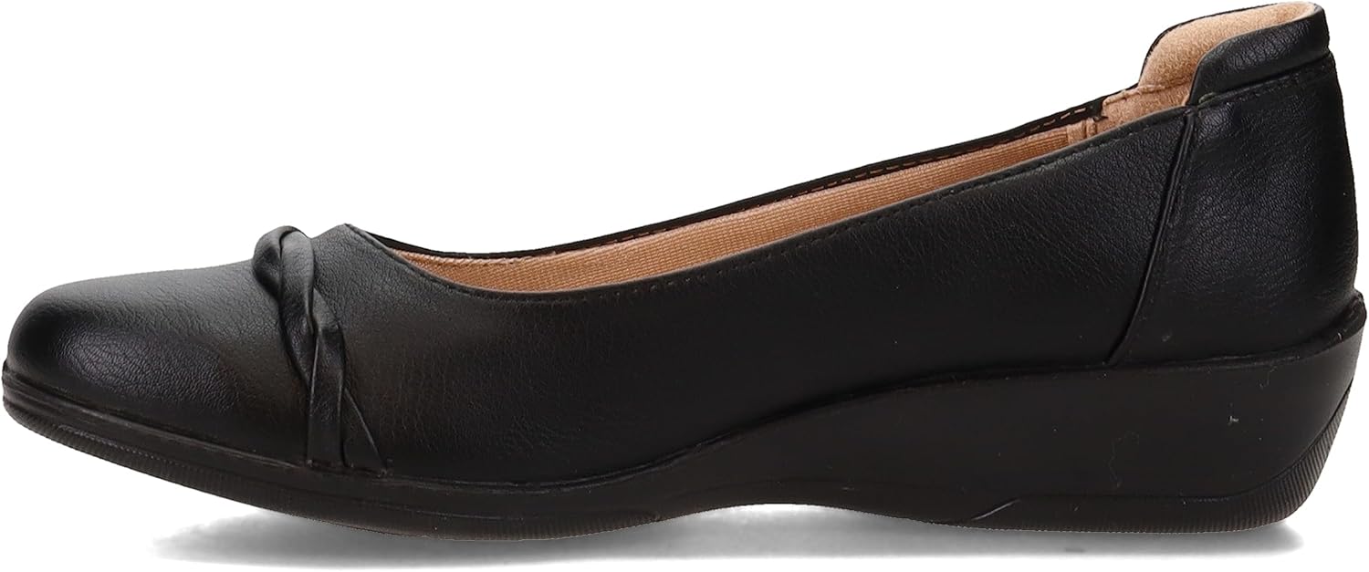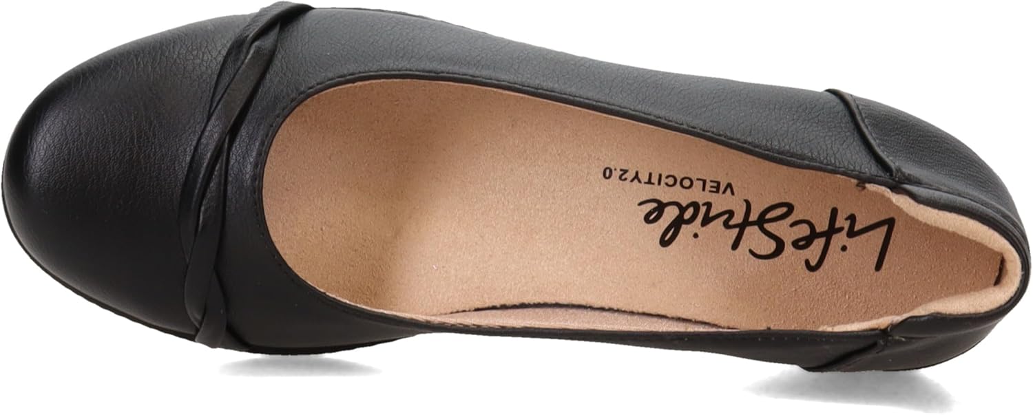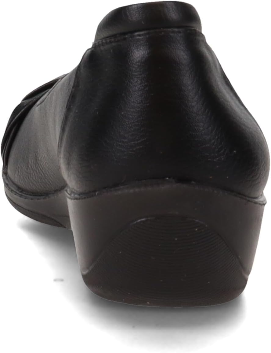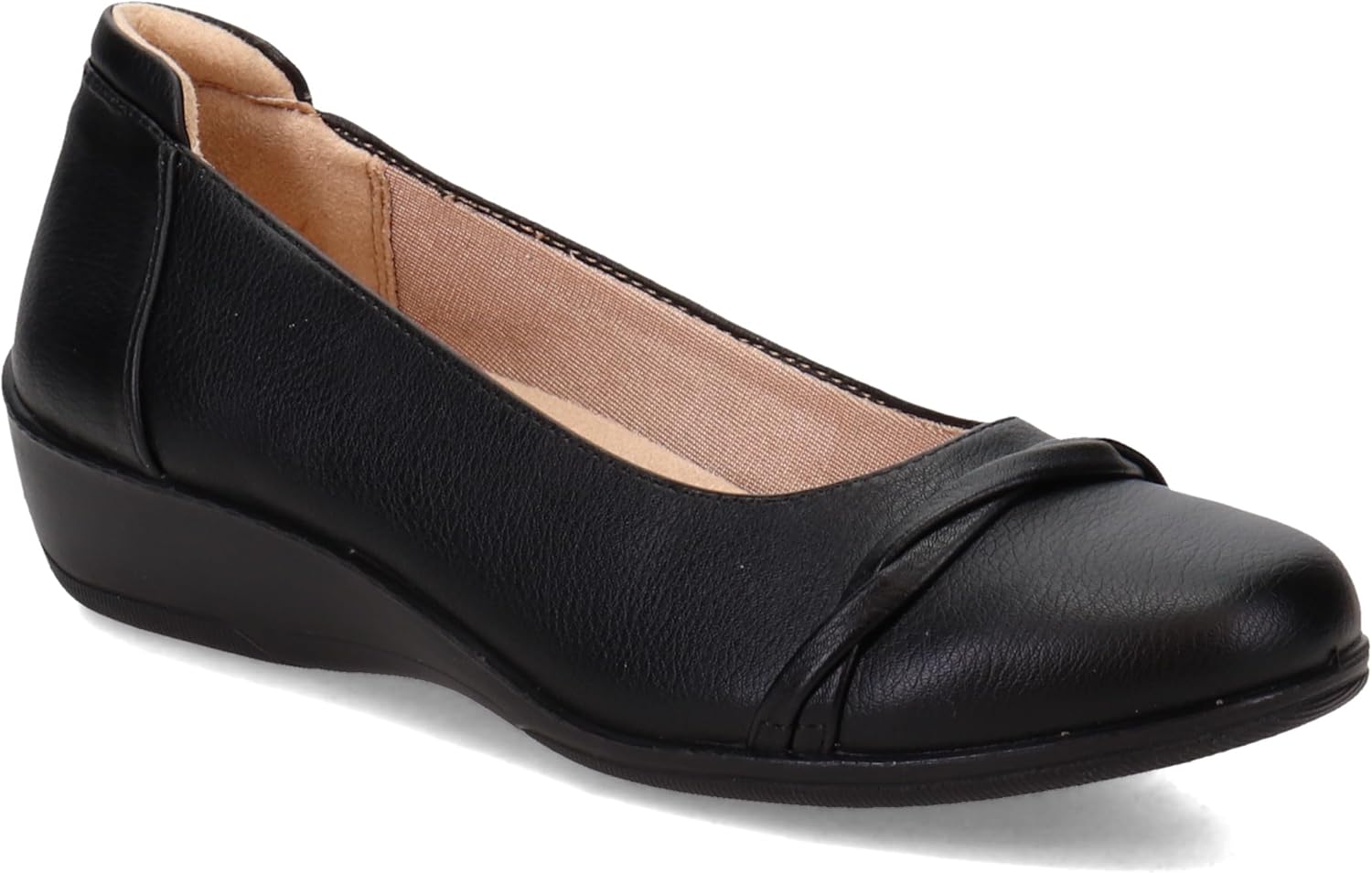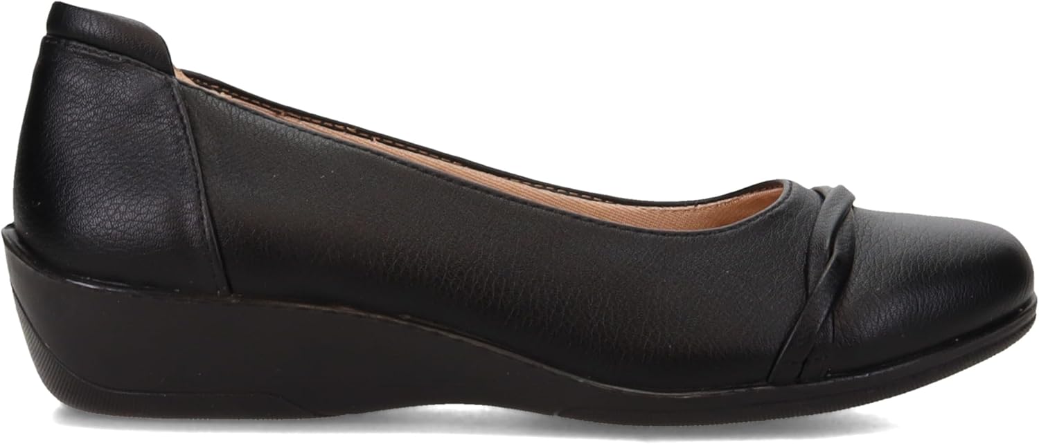 Feel like you’re walking on air in this lightweight, must-have wedge. Faux leather upper with a round toe, slip-on fit, padded heel collar, ultra-lightweight construction, and exceptional flexibility. Toe box and heel counter partially crafted with recycled materials. Soft System® comfort package provides all-day support, flex, and cushioning. Get next-level comfort with Velocity 2.0®, featuring luxe linings, superior cushioning, and a premium insole with shock absorption & pressure distribution. Traction sole provides you with extra stability. Just Right Height 1 3/4 inch wedge heel.