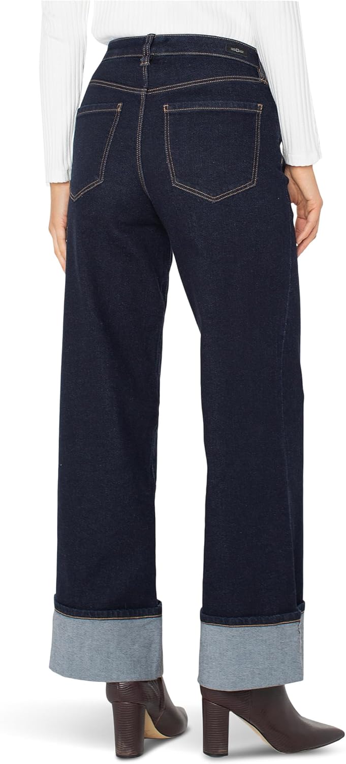 Vintage-inspired with a modern edge, these Liverpool Los Angeles Morgan Mid-rise Cuffed Wide Leg Jeans have a wide cuff for a touch of unexpected luxe. Cut from vintage denim in Indigo Rinse, it delivers structure and drape in equal measure. Pair it with a sleek knit or blazer-this is denim with a dressed-up twist. Complete with a mid-rise waist, belt loops, zip-fly, and button closure. Regular fit. Five-pocket design. 99% cotton, 1% elastane. Machine washable.