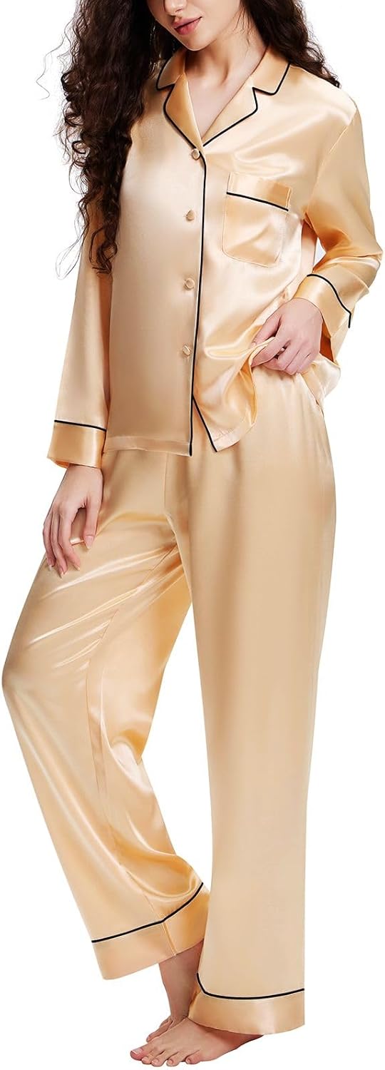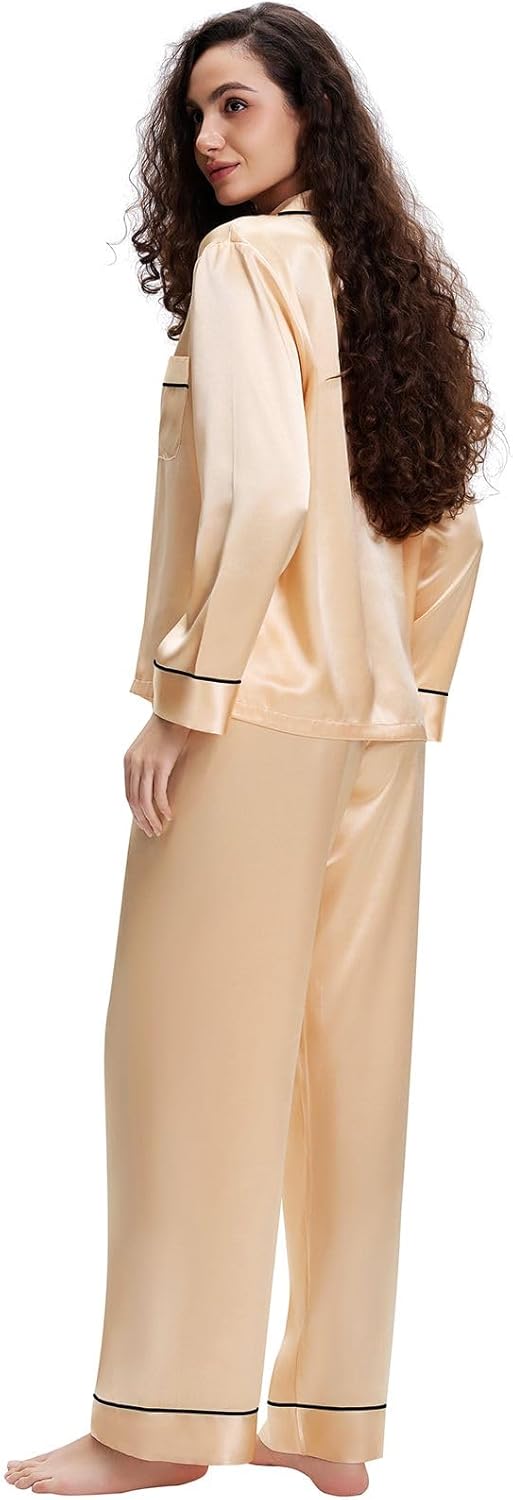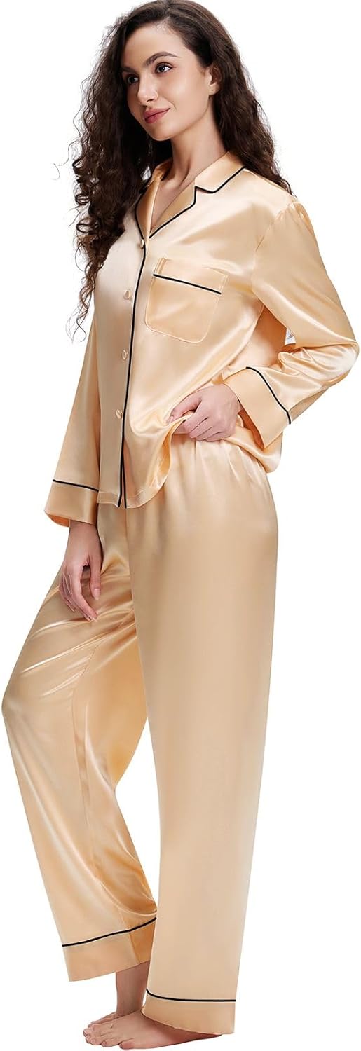 LONXU Silk Satin Pajamas Women’s Classic Satin Pajama Set 2 piece pajama set two piece comfortable loungeweartwo piece comfortable loungewear