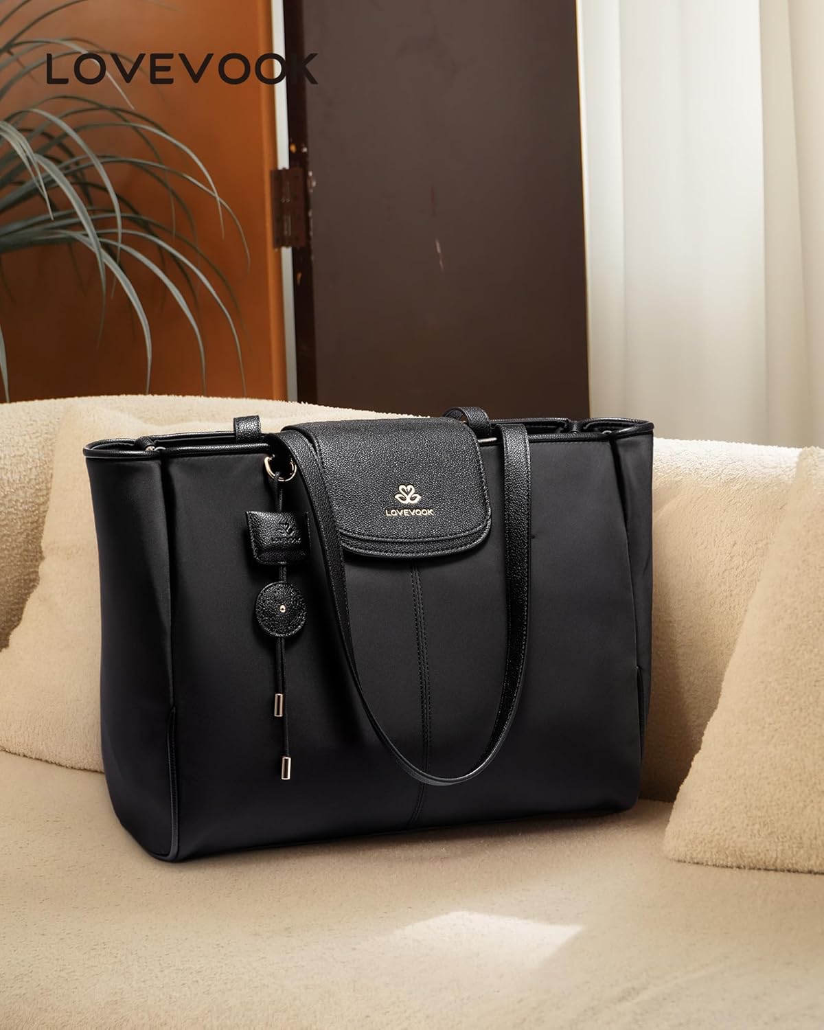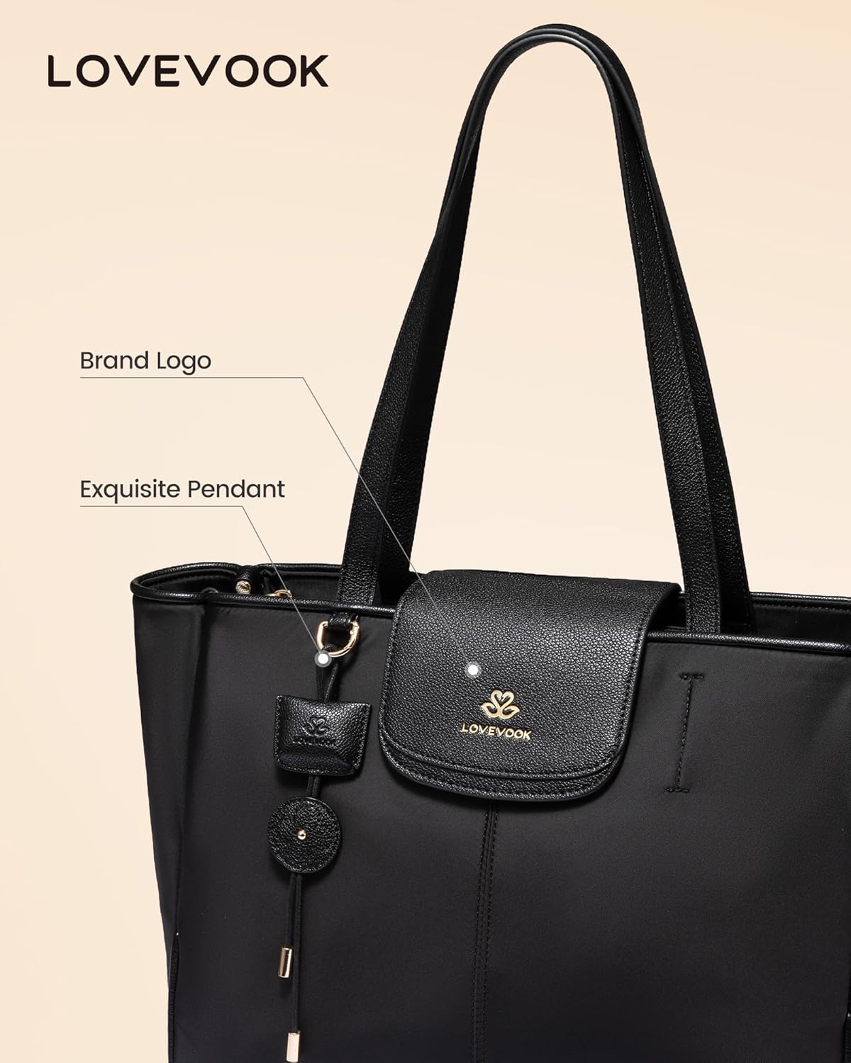 LOVEVOOK Laptop Tote Bag for Women,Nylon Work Totes with 15.6 Inch Laptop Compartments, Lightweight Computer Purse with Large Cup Holder,Travel Tote with Luggage Straps