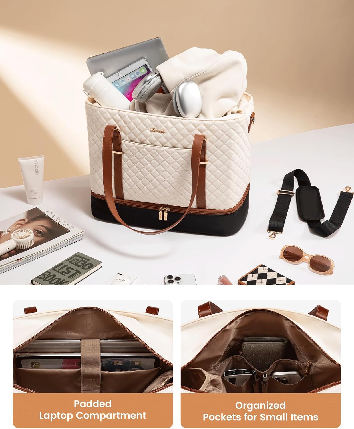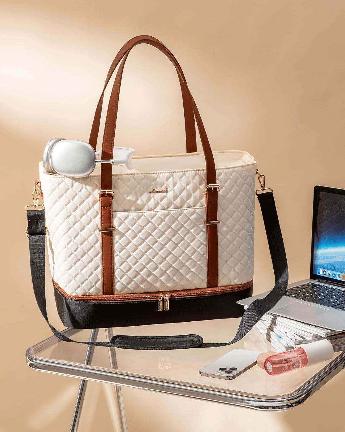 【Ample Storage & Smart Pockets】: Designed for efficiency, this laptop purse features a padded 15.6” laptop compartment, an iPad sleeve, 1 zippered main pocket, 2 slip pockets, and 2 pen slots. Effortlessly organize all your essentials.