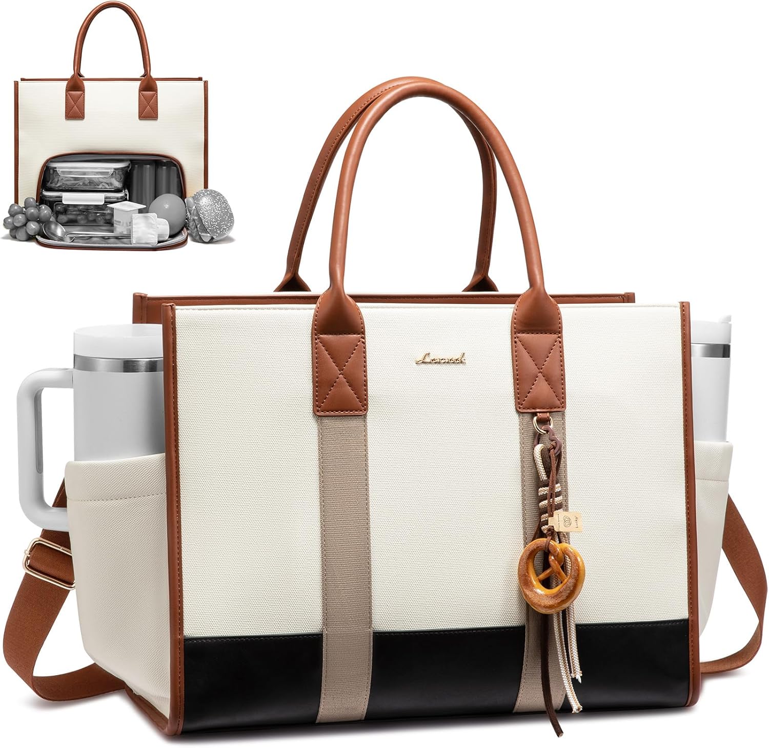 【3 In 1 Tote Bag With Lunch Compartment】: All-in-One Tote: Introducing the ultimate tote bag for women men.This versatile tote bag comfortably fits your laptop, while its insulated lunch bag section maintains your meal’s temperature—keeping it warm for up to 6 hours, cold for 8, and fresh for 12. Perfect work bags for women that transitions effortlessly from professional settings to personal errands.