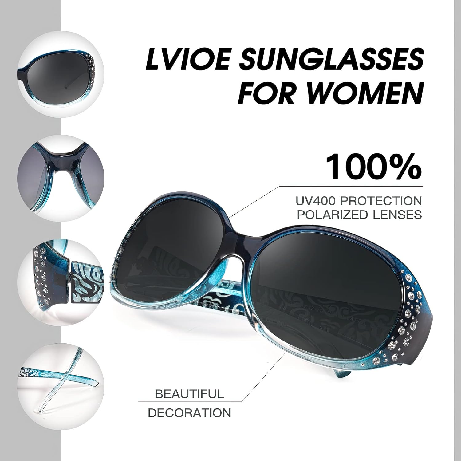 Be the first to review “LVIOE Polarized Sunglasses for Women, Rhinestone Wrap Around Sunglasses with UV Protection Lens LS008”