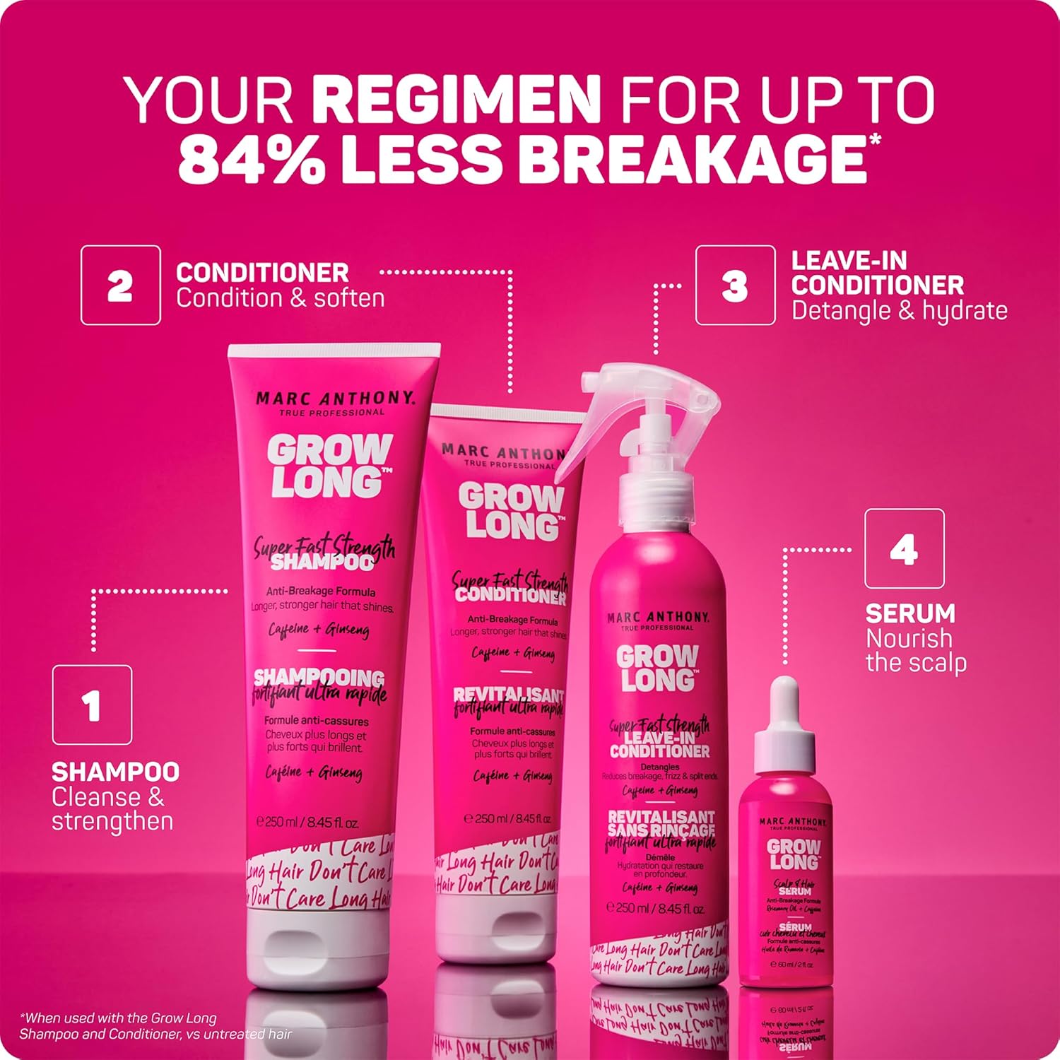 Long Hair, Don’t Care: Formulated to help you achieve those perfect lengths without limits, our Grow Long collection features moisturizing, anti-breakage formulas blended with Caffeine and Ginseng for stronger, longer, healthier looking hair.