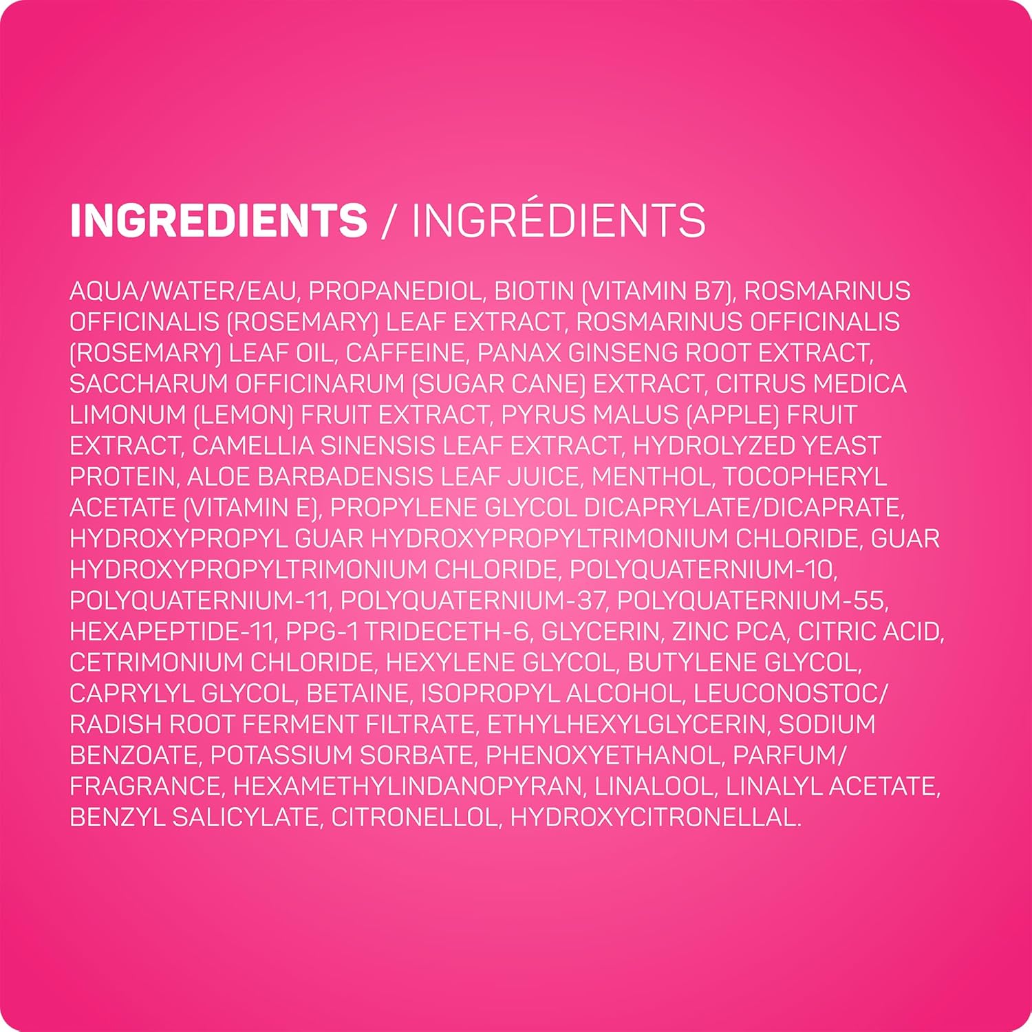 Essential Ingredients: Infused with Rosemary Oil to help strengthen hair follicles and improve scalp health while a conditioning blend of Caffeine, Ginseng, and Biotin helps protect your lengths from future breakage.